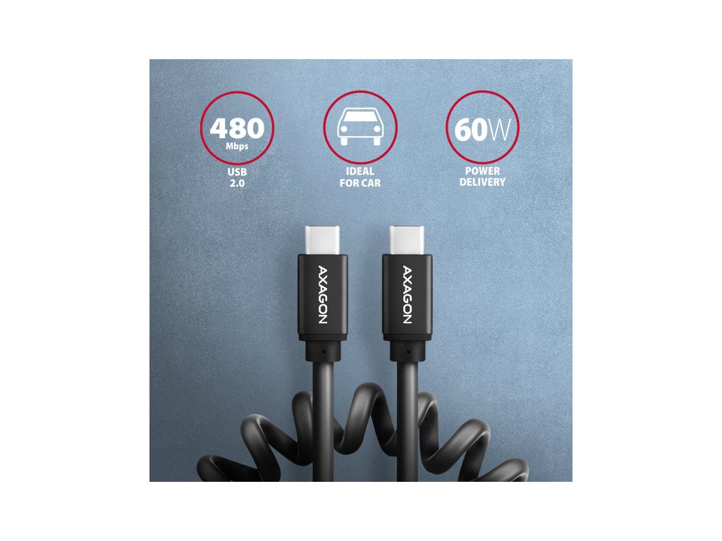 AXAGON BUCM-CM20TB, TWISTER kábel USB-C <-> USB-C, 1.1m, USB 2.0, PD 60W 3A, ALU, tpe, čierny BUCM-CM20TB