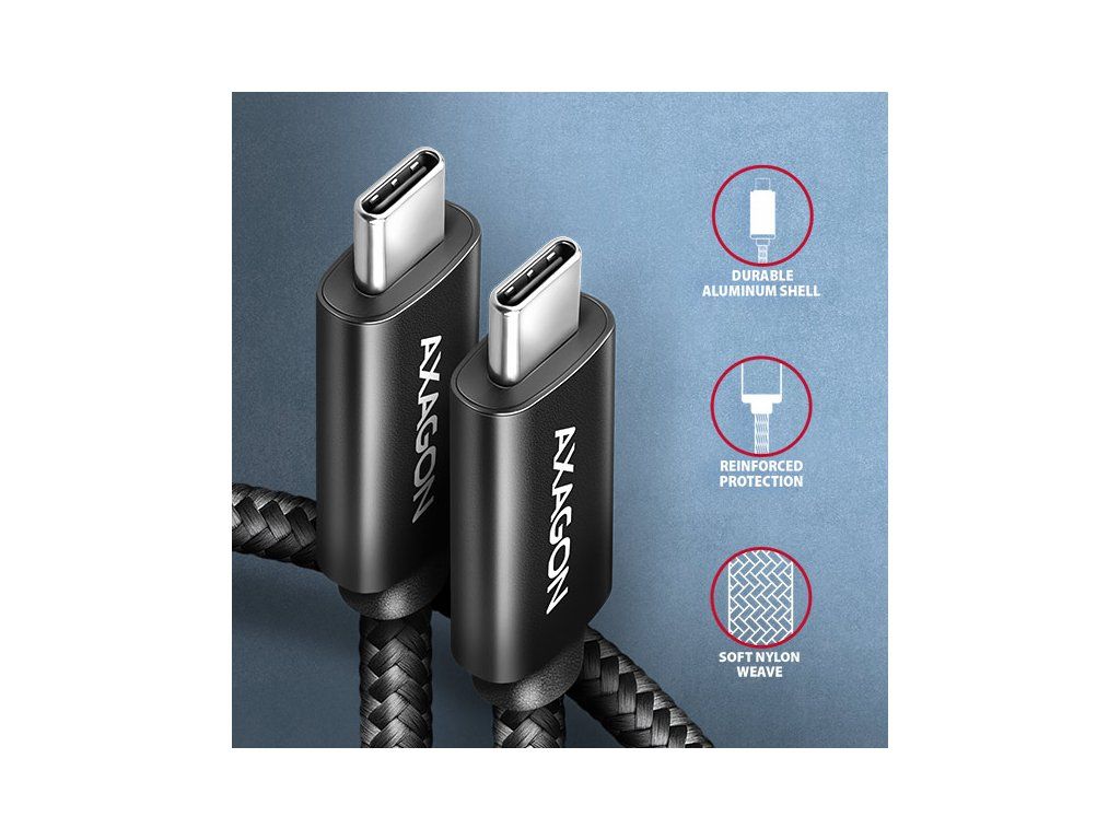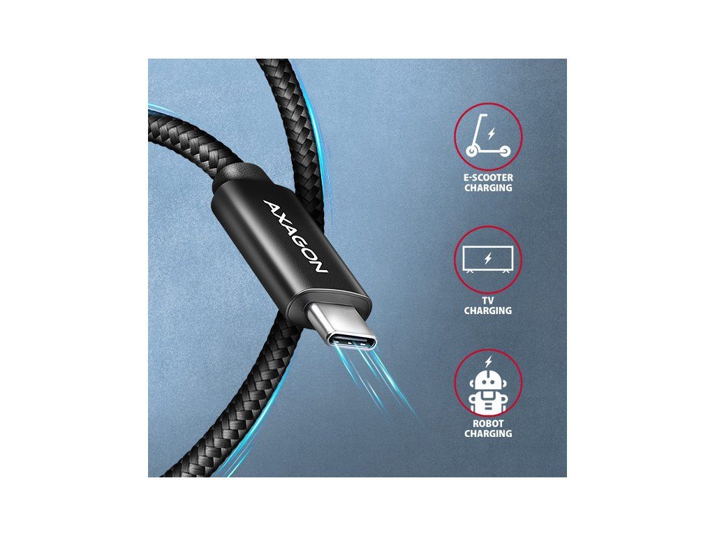 AXAGON BUCM2-CM25AB, CHARGE kábel USB-C <-> USB-C, 2.5m, Hi-Speed ??USB, PD 240W 5A, ALU, oplet, čierny BUCM2-CM25AB