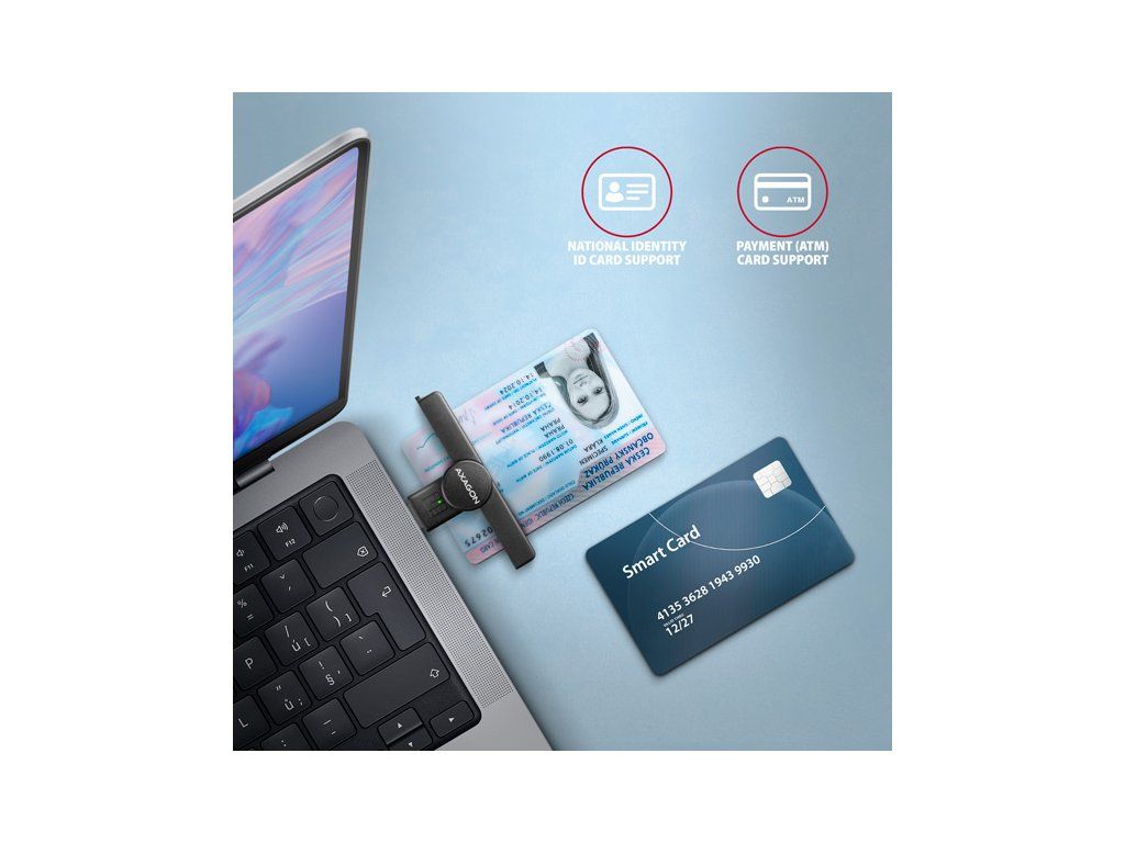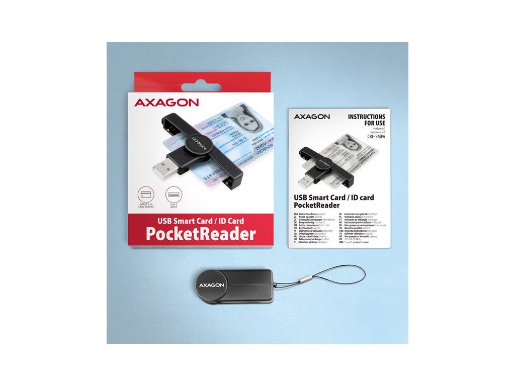 Skládací kapesní čtečka Smart card / ID card AXAGON CRE-SMPA PocketReader s USB-A 480Mbps rozhraním. Je vhodná zejména jako čtečka občanských průkazů pro použití s notebooky, které disponují USB-A vstupem. Nejrozšířenější USB-A konektor zajistí připojení jak k novému, tak i staršímu počítači. Card reader podporuje všechny běžné formáty kontaktních Smart karet, čipových karet a dalších karet včetně kontaktních bankovních platebních karet nebo kontaktních elektronických občanských průkazů. Čtečka je plně kompatibilní s aplikací eObčanka (CZ) nebo eID klient (SK). Kompatibilita se všemi běžnými operačními systémy jako Windows, Linux, macOS, iOS a Android umožňuje široké využití jak na počítačích a noteboocích, tak na smartphonech a tabletech. Chytrá LED indikace svítí jen krátkou chvíli po změně aktivity, poté zhasne a neruší uživatele zbytečným svitem. Skládací design a kompaktní rozměry, dělají z této čtečky jednu z nejmenších čteček Smart karet na trhu. Integrované poutko umožňuje zavěšení třeba na klíče a můžete ji tak mít neustále při sobě a nebude překážet. Vstup: • USB-A 480Mbps protokol CCID. • Zpětně kompatibilní s USB 1.1. • Připojení k počítači přes USB 2.0 konektor typu A male. • Pro připojení k telefonu nebo tabletu s USB-C konektorem doporučujeme USB-C -> USB-A redukci např. AXAGON RUCM-AFAC. Pro připojení k telefonu s micro USB konektorem doporučujeme OTG redukci micro USB -> USB-A. Čtečka karet: • 1 slot podporuje karty ATM / CAC / ID / IC / SIS. • Podpora kontaktních Smart karet splňujících ISO 7816, třídy A, B a C (5V, 3V a 1.8V). • Podpora standardů ISO 7816, EMV 4.1 (EMV 2000 level 1). • Podporované protokoly T=0 and T=1, I2C, SLE 4432/42 (S=10), SLE 4418/28 (S=9). • Podpora PC Smart Card standardu PC/SC 2.0. • Podpora Microsoft Smart Card for Windows. • Podpora I2C karet SLE4418, SLE4428, SLE4432, SLE4442, SLE4436, SLE5536, SLE6636, AT88SC1608, AT45D041. • Vyhovuje Microsoft WHQL USB Smart Card Reader. • Vyhovuje požadavkům standardu FIPS 201. Další vlastnosti: • Kompatibilní s ovladačem Microsoft USB-CCID. • Podpora Plug and Play. • Podpora úsporného režimu, automatické přepnutí do úsporného režimu. • Napájení čtečky po USB sběrnici (bus-power). • LED indikující vložení karty (trvalým svitem) a přenos dat (blikáním). • LED indikace svítí jen krátkou chvíli po změně aktivity, poté zhasne a neruší zbytečným svitem. • Rozměry 52 x 20 x 16 mm. • Hmotnost 13 g. Podporované operační systémy: • Windows 7 / 8.1 / 10 / 11 a novější, macOS, Linux, iOS a Android. • pro práci se Smart kartou je nutné nainstalovat do připojeného zařízení vhodnou aplikaci, např.: eObčanka (CZ) nebo eID klient (SK). • Pozn.: Čtečka podporuje pouze kontaktní karty, které mají na povrchu viditelné kontakty. Karta bez kontaktů je typu RFID, a nelze ji ve čtečce použít. Balení v kartonové krabičce s otvorem pro zavěšení obsahuje: • USB-A čtečku Smart karet, • závěs na klíče, • vícejazyčný návod CZ/DE/DK/ENG/ESP/FIN/FR/GR/HR/HU/IT/NL/PL/PT/RO/RU/SK/SWE/BG/CN/TR/ARA.Dodatočné parametre