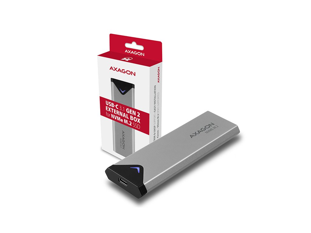 Super rychlý externí box AXAGON EEM2-UG2 s USB 3.2 Gen 2 rozhraním je určen pro NVMe (PCI-Express) M.2 SSD disky. Nejnovější USB rozhraní dovolí užívat si rychlost moderních M.2 SSD disků. Díky rychlému USB 3.2 Gen 2 rozhraní je přenosová rychlost až 10Gb/s. Pohodlné připojení umožňuje oboustranný USB-C konektor. Externí M.2 box podporuje i další moderní funkce např. TRIM. Do externího boxu je možné použít NVMe M.2 SSD disky až do rozměru 22x80 mm. Box nemá omezení kapacity SSD disků. Karty M.2 mohou být jednostranné nebo oboustranné. Hliníkové tělo boxu a teplovodivé podložky zajistí velice dobré chlazení vloženého M.2 SSD disku. Vložením M.2 SSD disku do tohoto boxu snadno vytvoříte rychlý a kompaktní externí disk. Box je možné použít jak s počítači a notebooky, tak s mobilními telefony a tablety s podporou funkce OTG. Vstup: • USB 3.2 Gen 2 / SuperSpeed+ USB s rychlostí až 10 Gbit/s. • Připojení přes reverzibilní USB type C female konektor. Podpora zařízení: • NVMe M.2 SSD disky, • určeno pro karty formátu M-key nebo B+M key, • NGFF 75-pinový M-key slot pro NVMe M.2 disky. Další vlastnosti: • Kompatibilní s USB 3.2 Gen 2, zpětně kompatibilní s USB 3.1 Gen 1 / USB 3.0 a USB 2.0. • Podpora přenosových rychlostí 10.000 / 5000 / 480 Mbit/s (SuperSpeed 10 Gbps / SuperSpeed / HighSpeed). • Podpora M key nebo B+M key NVMe (PCI-Express) M.2 SSD disků bez omezení maximální kapacity. • Podpora M.2 disků rozměrů - 2242, 2260, 2280 mm. • Podpora jednostranných i oboustranných M.2 SSD disků. • Vyhovuje PCI Express Base Specification Revision 3.1a specifikaci. • Vyhovuje NVM Express 1.3 specifikaci. • Vyhovuje USB Mass Storage Class specifikaci. • Celková propustnost / přenosová rychlost boxu je dána použitým USB 3.2 Gen 2 rozhraním (teoreticky až 10 Gbit/s). • Reálná propustnost / přenosová rychlost boxu kolem 1000 MB/s (1 GB/s) je dána limity USB 3.2 Gen 2 rozhraním. • Podpora UASP (USB Attached SCSI) pro rychlejší přenos dat ve Windows 8 a novějších. • Podpora funkce TRIM pro omezení pozvolné degradace výkonu SSD v čase. • Podpora bootování z SSD v externím boxu. • Možnost připojení zařízení za chodu díky podpoře Hot Plug. • Plná podpora Plug and Play. • Podpora úsporného režimu - usínání disku po 5 minutách nečinnosti. • Napájení po USB sběrnici až 900mA z jednoho USB portu zcela dostačuje ve všech případech. • Decentní modrá LED dioda indikující připojení k USB portu počítače (trvalým svitem) a přenos dat (blikáním). • Hliníkové odolné tělo a teplovodivé podložky napomáhají lepšímu chlazení M.2 SSD disku. • Vyšší povrchová teplota boxu není závadou - díky hliníkovému tělu je teplo generované provozem disku lépe odváděno a předáváno do okolí. • Připojení přes USB 3.2 Gen 2 type C female konektor. • Kabel USB type C male / USB type C male délky 22 cm je součástí balení. Další údaje: • Rozměry externího boxu 115 x 39 x 11 mm. • Hmotnost externího boxu 43 g (bez USB kabelu a M.2 SSD disku). Podporované operační systémy: • MS Windows 7 / 8 / 8.1 / 10 a novější, Windows Server 2008 / 2012 / 2016 a novější (podporovány všechny 32- i 64-bitové verze OS Windows), Mac OS X 10.x a vyšší, Linux s jádrem 2.6.x a vyšším, Android (nutná podpora ze strany OS a zařízení). • Pozn.: Při použití s Windows 7 je nutné ověřit u výrobce M.2 SSD disku podporu tohoto OS a dostupnost ovladače. Balení v kartónové krabičce s přehledně uvedenými parametry obsahuje: • USB-C 3.2 Gen 2 externí box pro NVMe M.2 SSD, • USB type C – type C kabel délky 22 cm, • 3ks teplovodivých podložek, • montážní materiál a šroubovák, • tištěný instalační návod EN/CZ/DE/ESP/FR/HU/IT/PL/RO/RU/SK/BG.Dodatočné parametre