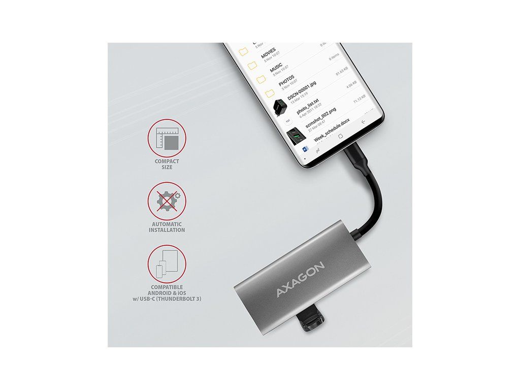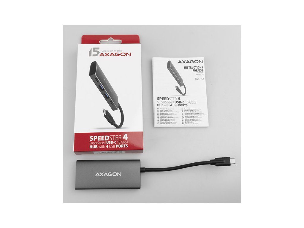 AXAGON HMC-4G2, USB-C 3.2 Gen 2 10 Gb/s hub, porty 2x USB-A + 2x USB-C, kábel USB-C 13cm HMC-4G2