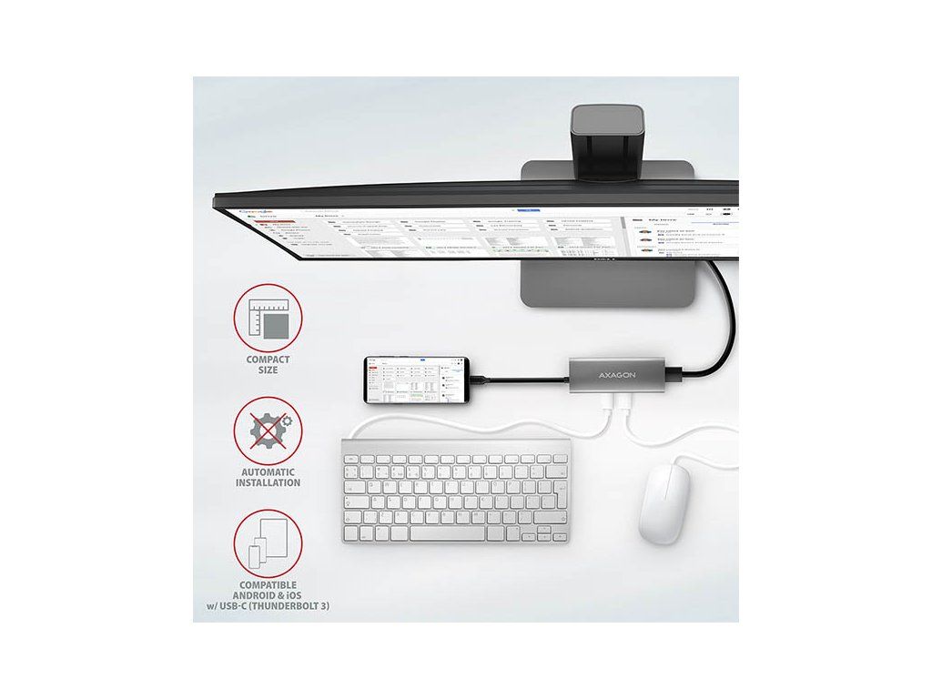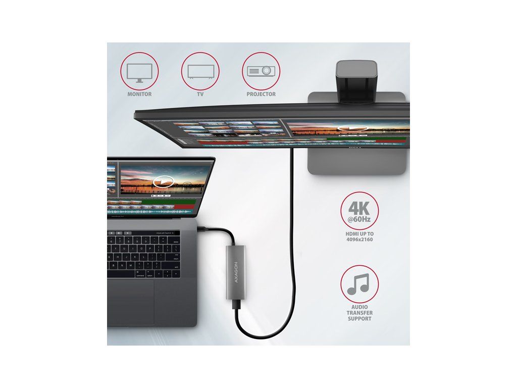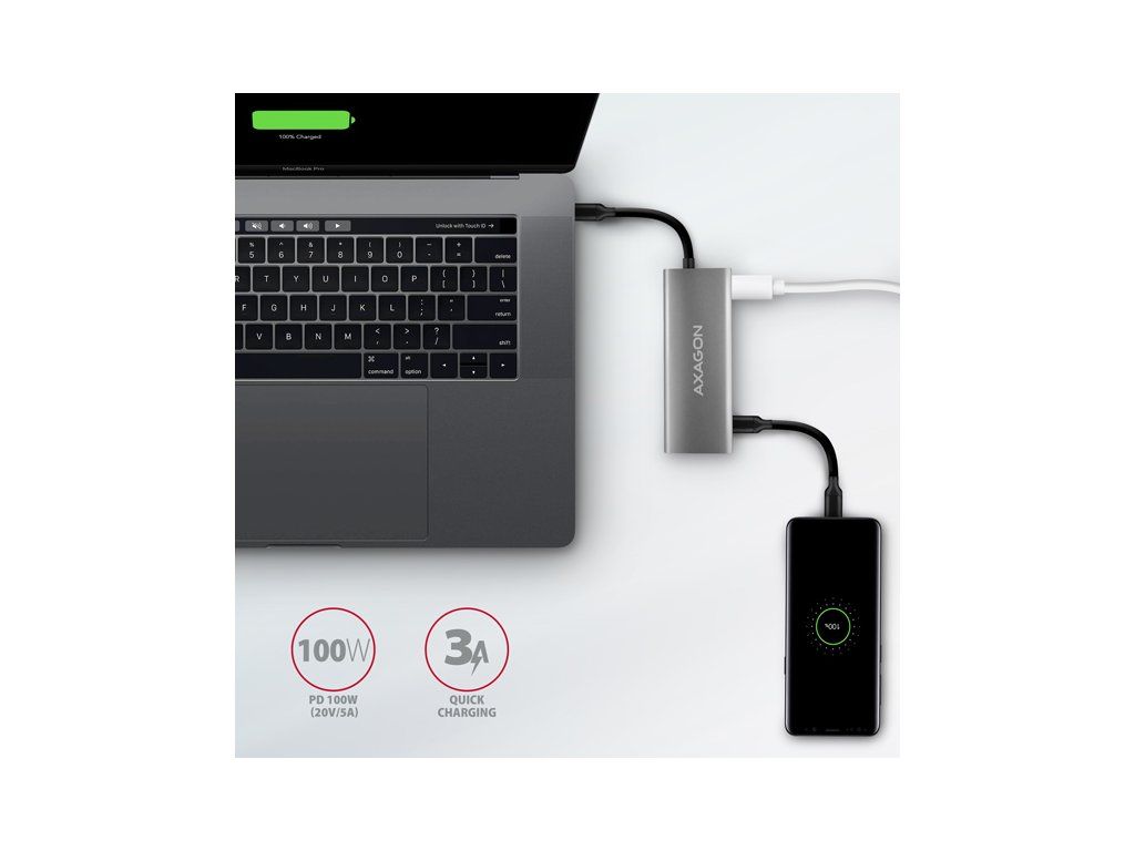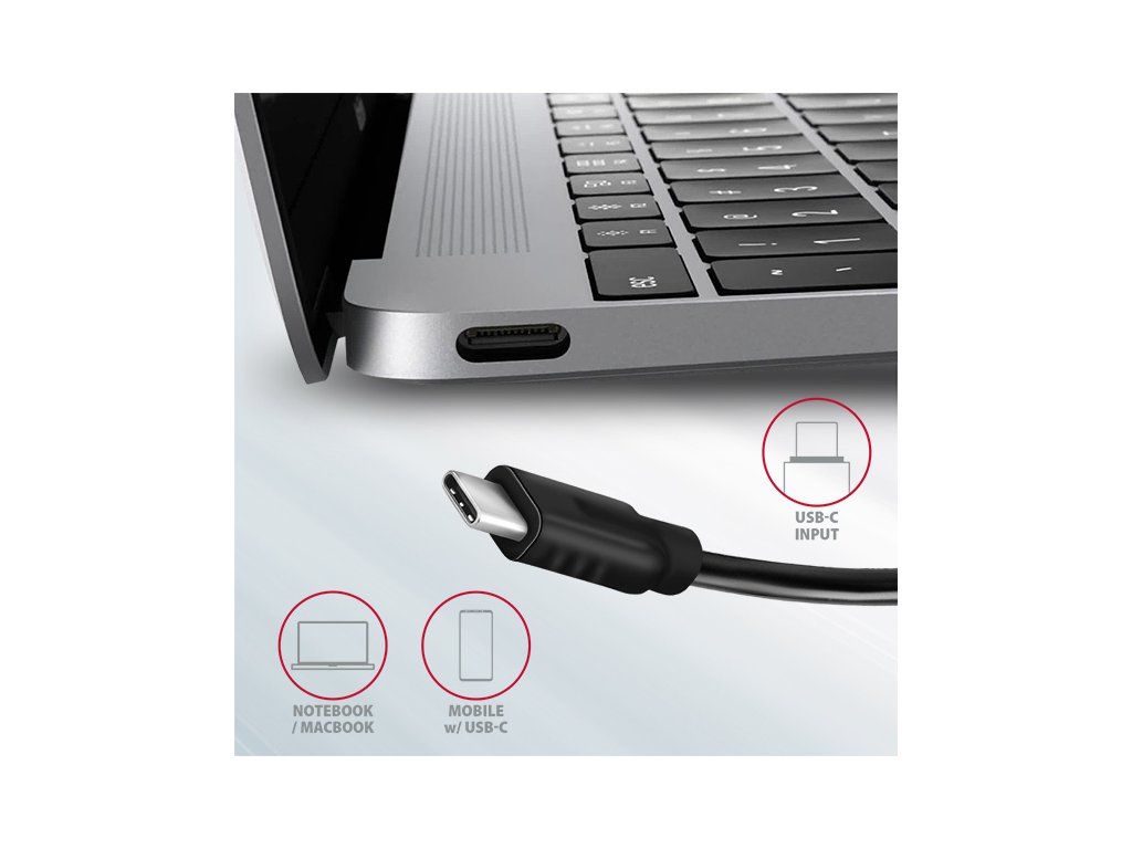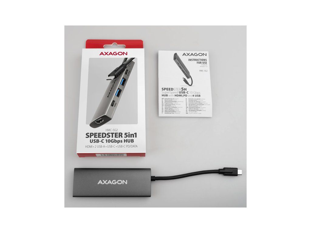 Multiportový USB-C 10Gbps AXAGON HMC-5G2 SPEEDSTER 5in1 hub rozšíří Váš notebook, počítač nebo telefon o pětici portů. Přes oboustranný USB-C konektor snadno a rychle připojíte k počítači monitor a tři USB zařízení současně. Zároveň získáte možnost napájení notebooku pomocí technologie Power Delivery. Replikátor portů vám tak poskytne jednoduchou a skladnou dokovací stanici 5v1 nejen k Windows notebookům ale i Apple notebookům jako je například MacBook Air nebo MacBook Pro. USB rozbočovač nabízí celkem čtyři USB výstupy o rychlosti 10Gbps - dva se standardními USB-A konektory a dva s USB-C. Díky pokročilému standardu USB 3.2 Gen 2 můžete ke všem výstupům připojit vysokorychlostní zařízení jako NVMe M.2 externí disky až 2x vyšší rychlostí 10 Gb/s oproti standardním hubům Gen 1 s rychlostí pouze 5 Gb/s. Multiportový hub zvládne trvalé připojení několika externích disků současně a také dovolí nabíjení notebooků, telefonů a tabletů proudem až 3A. Z hubu tak snadno nabijete např. Android smartphone, Apple iPhone, Apple iPad apod. Jeden z USB-C portů je kombinovaný a může být použit buď pro přenos dat, nebo pro nabíjení telefonů a notebooků pomocí technologie Power Delivery 3.0 výkonem až 100W. Do hubu zapojíte vhodnou USB-C Power Delivery nabíječku a hub připojíte k notebooku s podporou Power Delivery. Tím také uvolníte jeden USB-C port. HDMI výstup poskytuje kvalitní obraz až do rozlišení 4K/60Hz Ultra HD a podporuje přenos vícekanálového zvuku. Podporovány jsou také vysoké frekvence v oblíbených hráčských rozlišeních 2K/120Hz nebo FullHD/120Hz. Díky podpoře HDR (vysoký dynamický rozsah) si můžete bez omezení vychutnat výrazně rozšířený rozsah barev a kontrastů. Pro správné fungování video výstupu je nutné, aby notebook měl USB-C port s podporou DisplayPort Alternate Mode (DP Alt Mode) nebo port Thunderbolt 3, 4 a výše. Kompaktní a štíhlé hliníkové tělo nejen skvěle vypadá, ale zajistí i mechanickou odolnost a pasivní chlazení. Potěší také jemně strukturovaný povrch, na kterém nezůstávají otisky prstů. USB-C hub je ideálním doplňkem pro notebooky bez USB-A konektorů a video výstupu. Lze tak využít Vaše stávající USB periferie bez nutnosti pořizování nových. Díky funkcím Plug and Play a Hot Plug je samotné zapojení hubu velmi jednoduché bez složité instalace, a také lze jednoduše připojovat a odpojovat periferie za běhu počítače. Rozbočovač se nezalekne ani připojení k telefonům s USB-C konektorem. K telefonu tak připojíte například flash disk, klávesnici, myš, monitor, TV nebo projektor. Vstup (připojení k notebooku): • USB 10Gbps (USB 3.2 Gen 2), konektor USB-C male. • Kompatibilní s USB 3.2 Gen 1, USB4 a Thunderbolt 3/4. Vstup (napájení): • USB Power Delivery 3.0 - 100W port, konektor USB-C female. • Napájení notebooku ze síťového adaptéru přes USB-C hub. • Napájení PD musí podporovat jak notebook (telefon), tak síťová nabíječka. Výstupy USB: • 2x USB 10Gbps port, konektor USB-A female. • 1x USB 10Gbps port, konektor USB-C female. • 1x USB 10Gbps port pro přenos dat nebo Power Delivery nabíjení, konektor USB-C female. • USB-C hub zvládne připojení několika externích disků současně. • Rychlé nabíjení mobilních zařízení proudem až 3A v USB-C portech hubu. Výstup HDMI: • 1x HDMI port, konektor HDMI A female. • 4K rozlišení 4096 x 2160 při až 60Hz. • 2K / WQHD rozlišení 2560 x 1440 při až 120Hz. • FHD rozlišení 1920 x 1080 při až 120Hz. • Podpora výše uvedených max. rozlišení a frekvencí vyžaduje připojení k počítači s DisplayPort verze 1.4. • Pro funkci video výstupu je nutné hub zapojit do USB-C portu s podporou DisplayPort Alternate Mode (DP Alt Mode) nebo do USB-C portu s podporou Thunderbolt 3/4. Dále je nutný vhodný OS. Bez této podpory nebude funkce video výstupu dostupná. • Podpora HDR (High dynamic range, 10 bit support) - realistická reprodukce světlých a tmavých detailů. • Podpora HPD (Hot-Plug-Detect). • Podpora TMDS (Transition Minimized Differential Signaling). • Plná podpora HDCP 1.4 (High-bandwidth Digital Content Protection). • Podpora až 2kanálového LPCM zvuku. • Podpora vzorkovací frekvence až 48 kHz a až 24bitového zvuku – závisí na zdrojovém a koncovém zařízení, tj. notebooku/telefonu a TV/monitoru/AV receiveru. Další vlastnosti: • Možnost připojení zařízení za chodu díky podpoře Hot Plug. • Plná podpora Plug and Play. • Podpora úsporného režimu. • Napájení přes USB sběrnici - USB bus power nebo z PD nabíječky. • Odolné hliníkové tělo pro lepší chlazení hubu. • Modrá LED indikuje trvalým svitem připojení hubu k počítači, resp. jasnějším svitem připojení k Power Delivery nabíječce. • Kvalitní stíněný kabel zaručuje vysokou rychlost komunikace a minimální nežádoucí interference. • Rozměry 105 x 40 x 12 mm. • Hmotnost 60 g (vč. kabelu). • Délka USB kabelu 13 cm. Podporované operační systémy: • Microsoft Windows 10 / 11, macOS, iPadOS, iOS, Linux, Chrome OS a Android. Kompatibilita je závislá na používaném operačním systému a podpoře od výrobce zařízení. • DisplayPort Alternate Mode (DP Alt Mode) je podporovaný pouze v aktualizovaných operačních systémech a dále závisí na podpoře ze strany zařízení (notebooku, telefonu). • Na správnou funkci produktu mohou mít také vliv ovladače grafické karty. Doporučujeme stáhnout nejnovější verzi ovladačů. Balení v kartonové krabičce obsahuje: • USB-C hub s kabelem napevno délky 13 cm, • vícejazyčný návod CZ/DE/DK/ENG/ESP/FIN/FR/GR/HR/HU/IT/NL/PL/PT/RO/SK/SWE/TR/UA/BG/CN/ARA.Dodatočné parametre