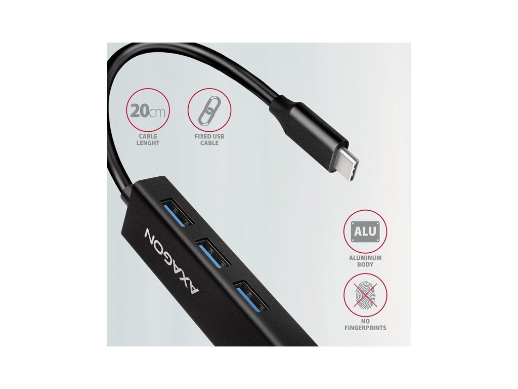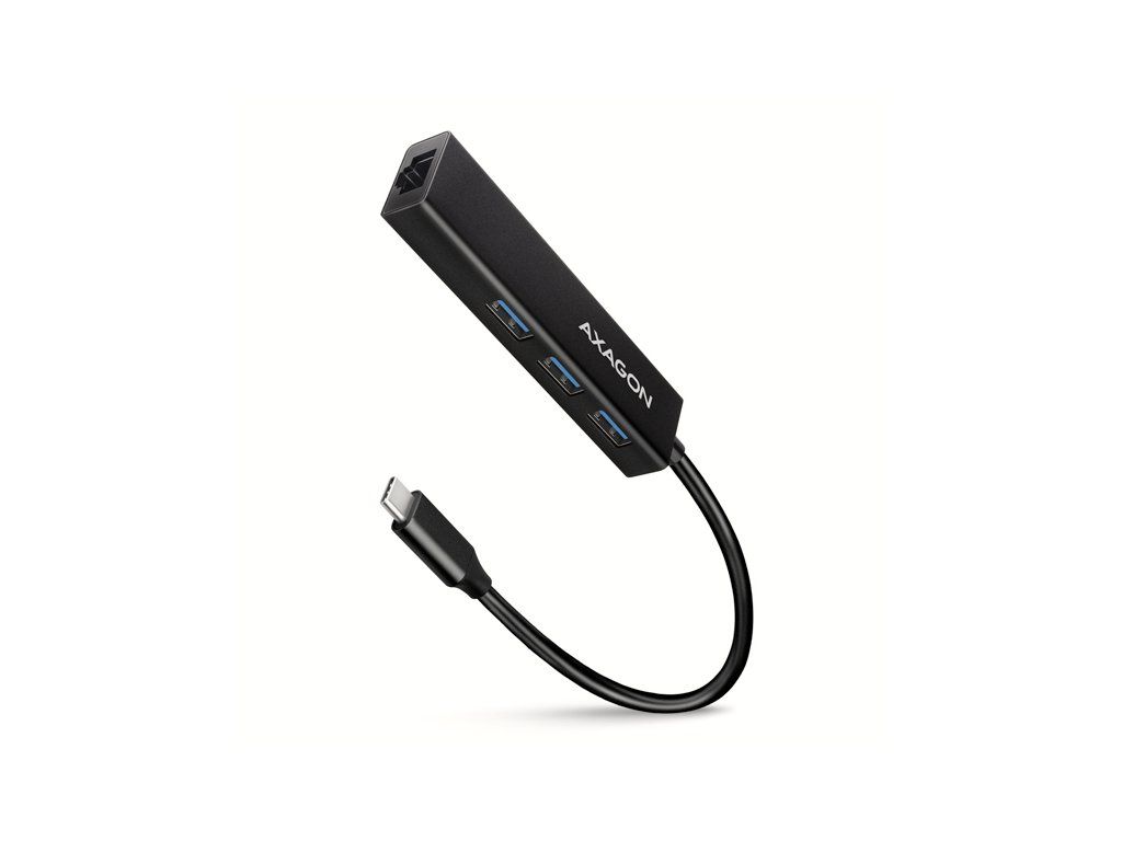 AXAGON HMC-GL3A, USB 3.2 Gen 1 hub, porty 3x USB-A + Gigabit Ethernet, kovový, kábel USB-C 20cm HMC-GL3A