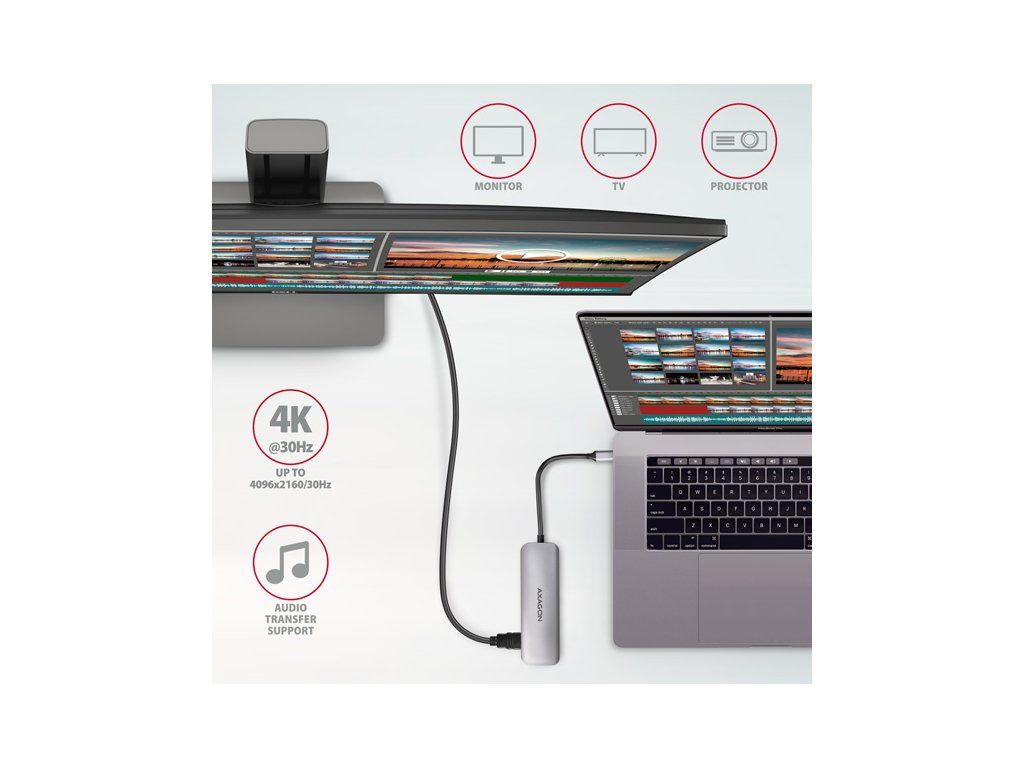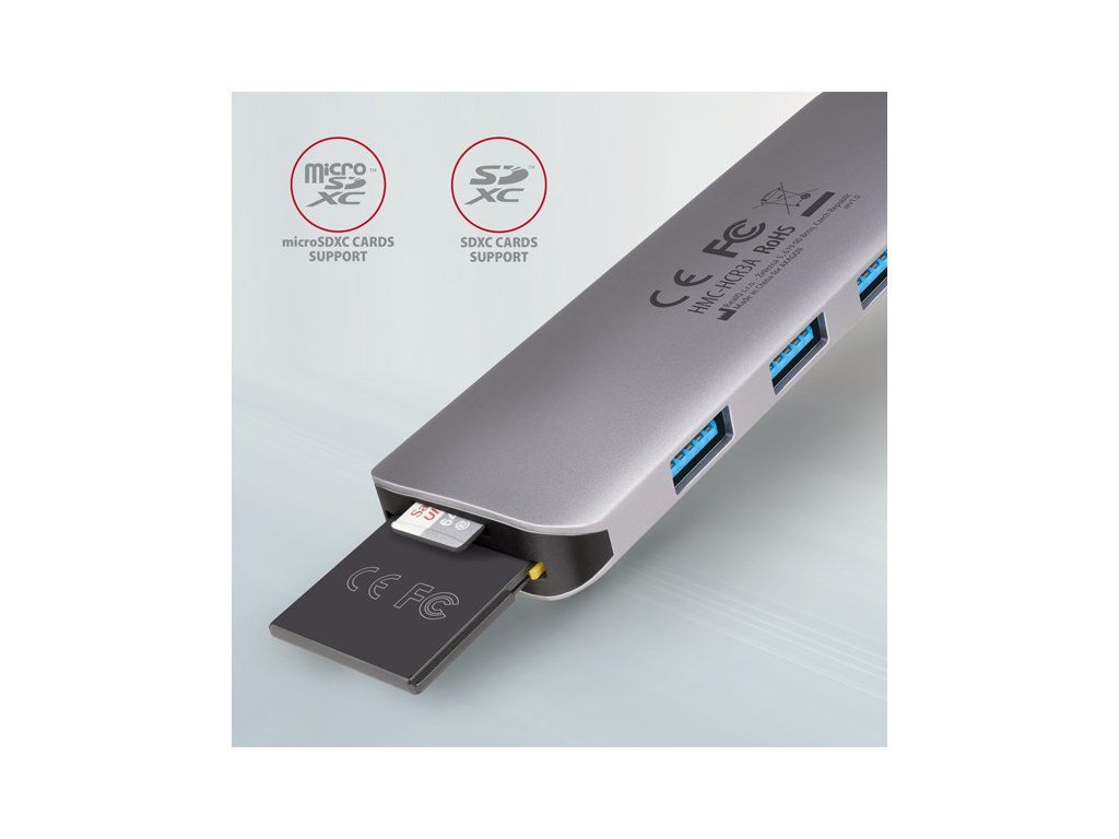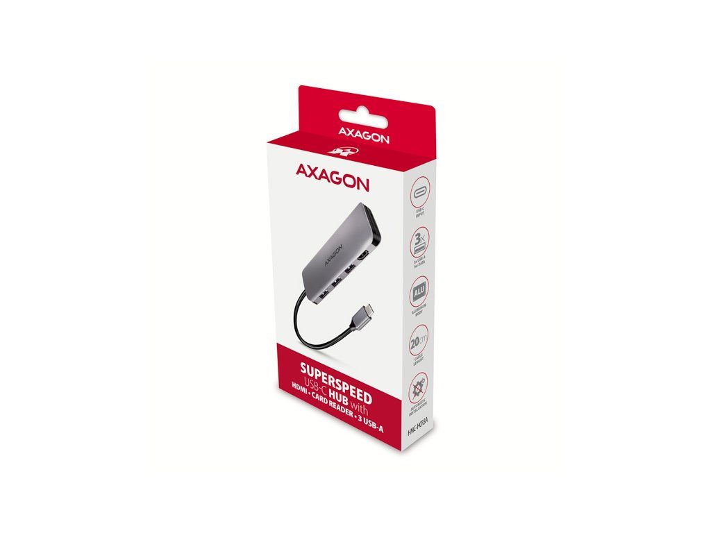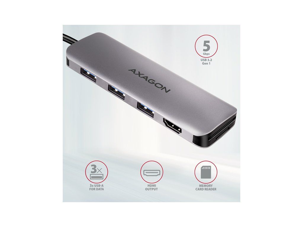 AXAGON HMC-HCR3A, USB 3.2 Gen 1 hub, porty 3x USB-A, HDMI 4k/30Hz, SD/microSD, kábel USB-C 20cm HMC-HCR3A