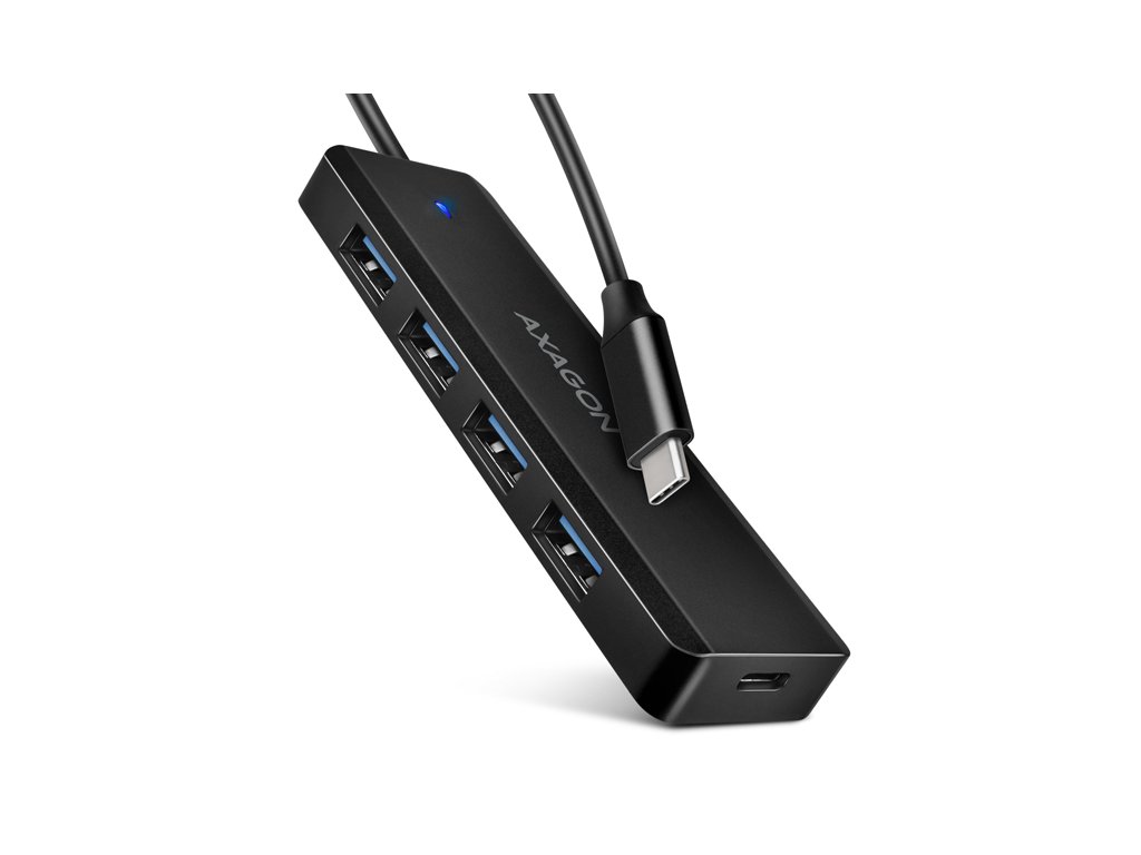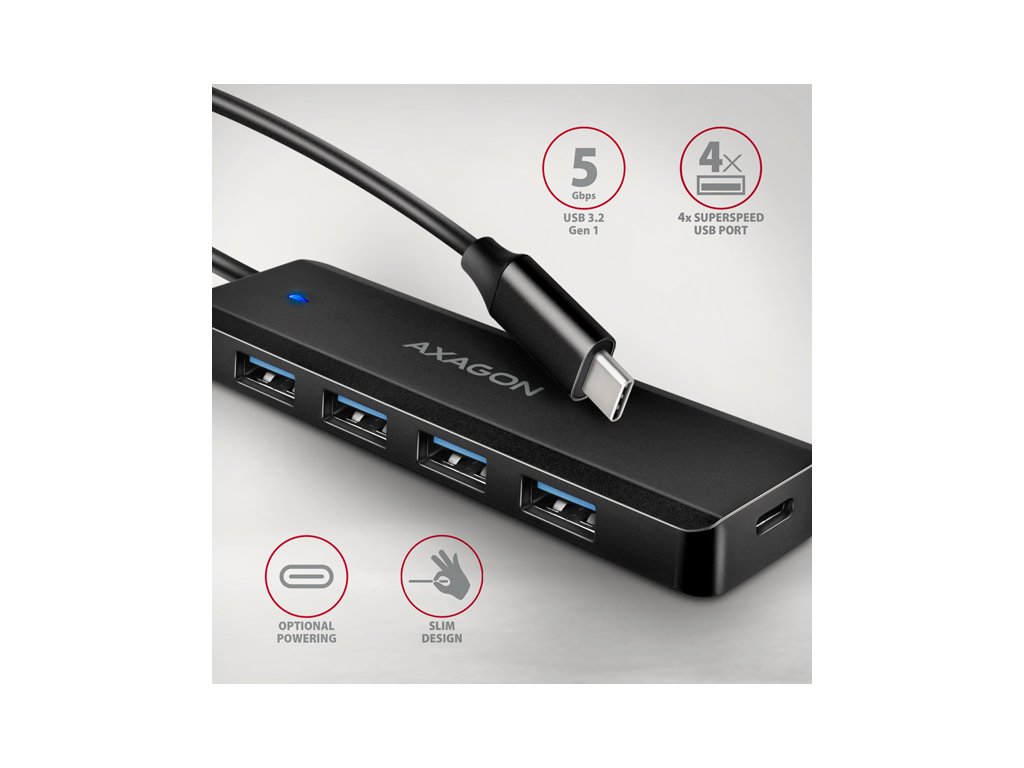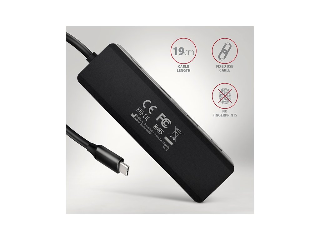 AXAGON HUE-C1C, 4x USB 5Gbps TRAVEL hub, USB-C napájací konektor, kábel USB-C 19cm HUE-C1C