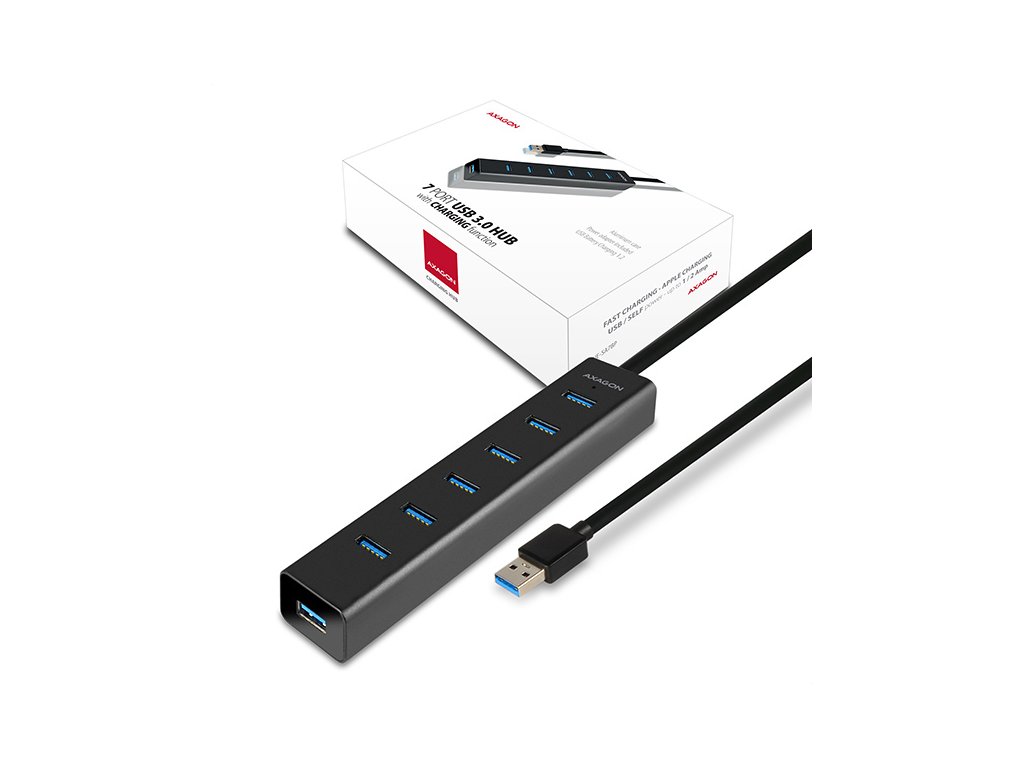 AXAGON HUE-SA7BP, 7x USB 3.0 ALU CHARGING hub, vr. AC adaptéra, kábel USB-A 40cm HUE-SA7BP