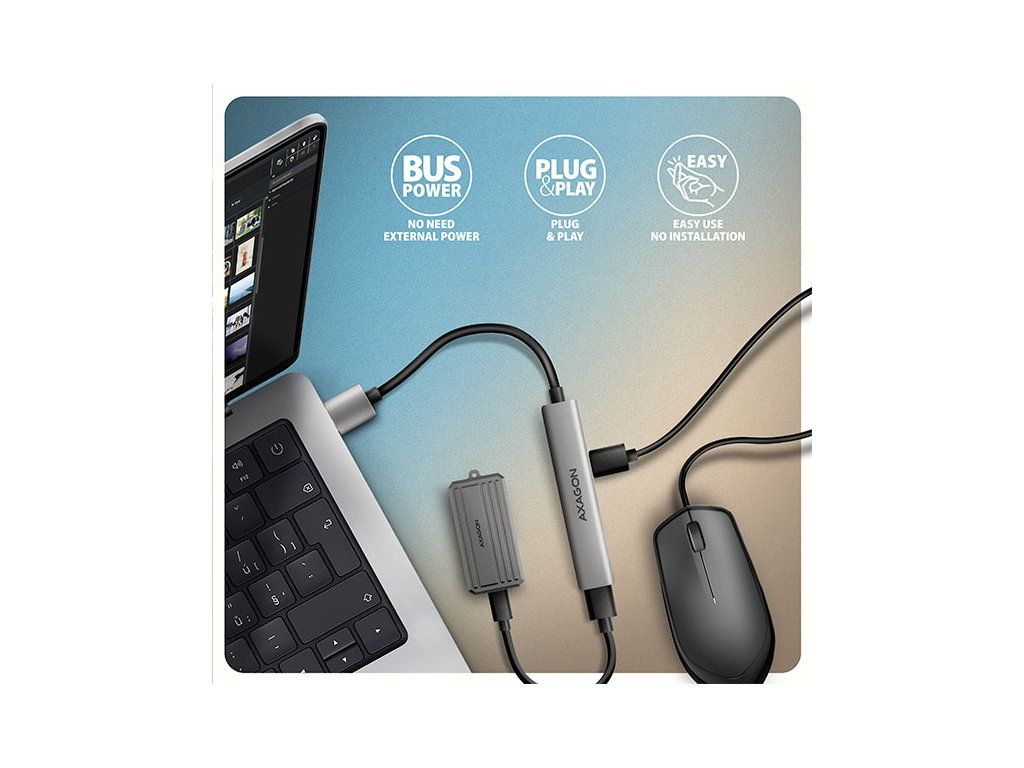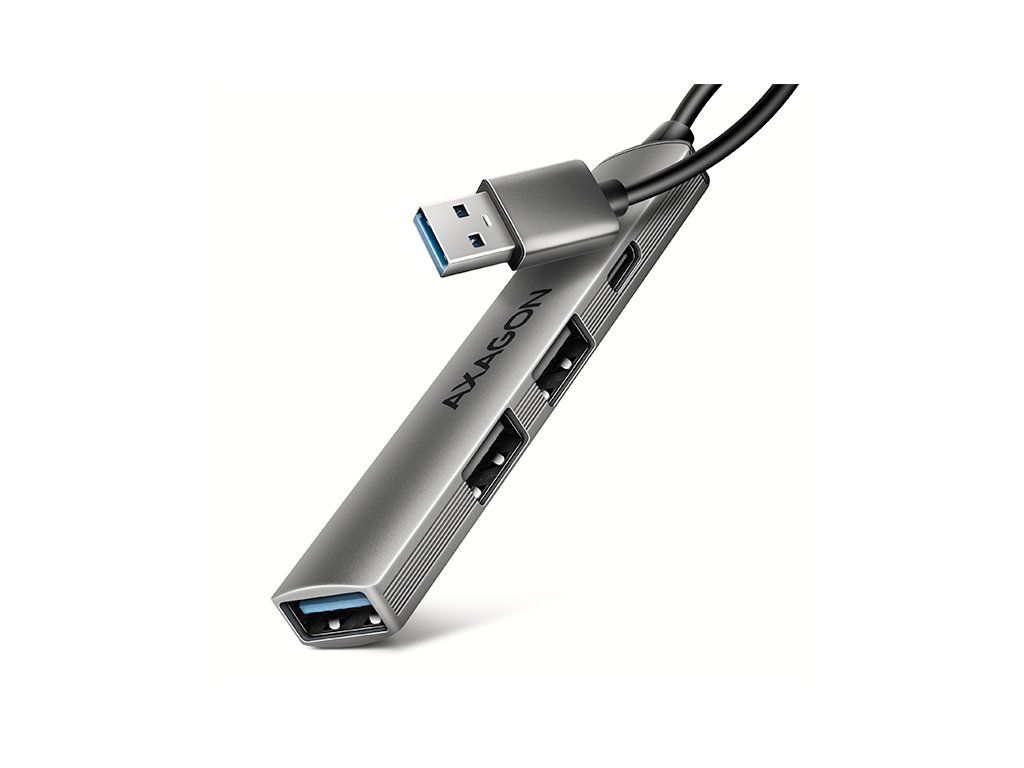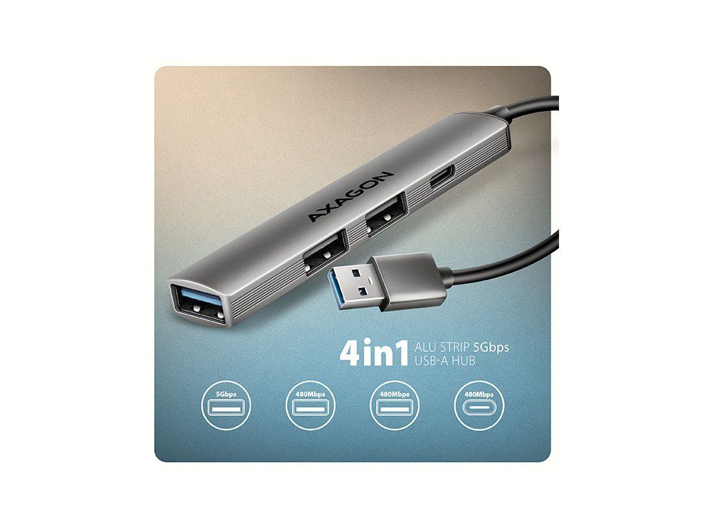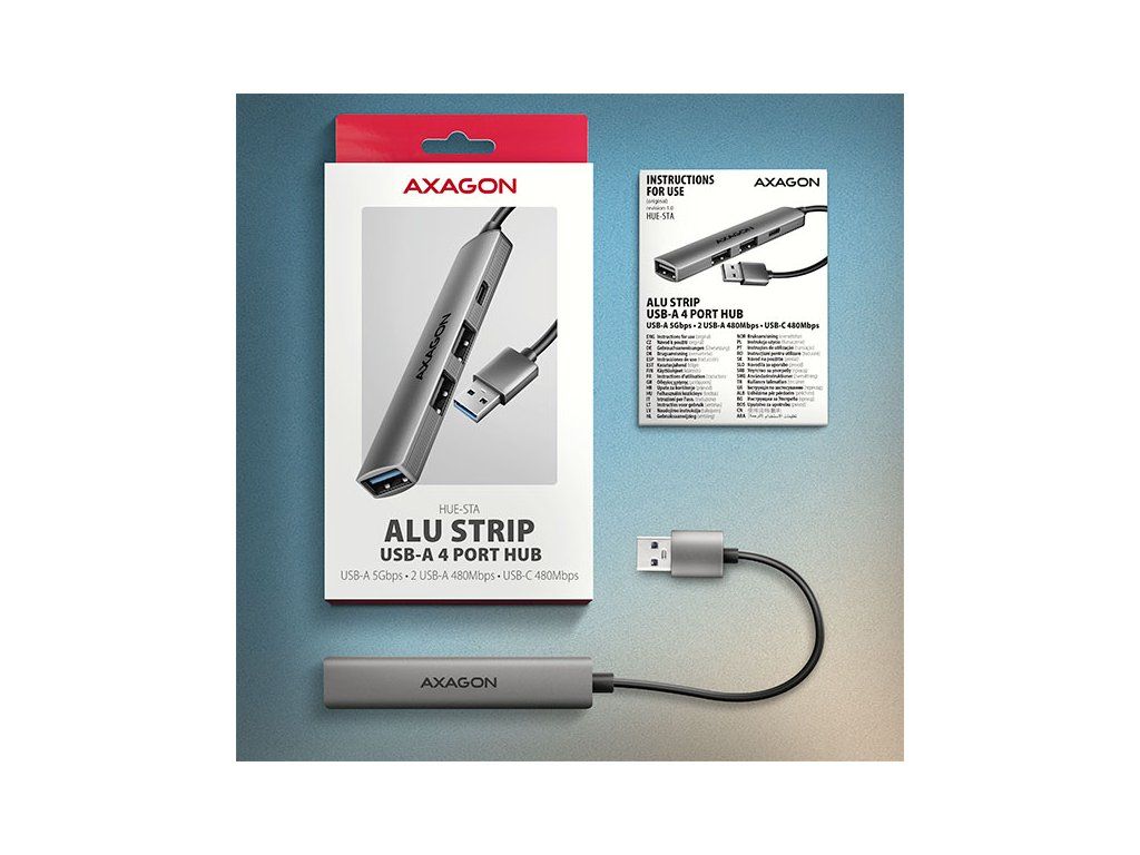 AXAGON HUE-STA, 4x USB ALU STRIP hub, 1x USB-A 5Gbps, 2x USB-A & 1x USB-C 480Mbps, kábel USB-A 12cm HUE-STA