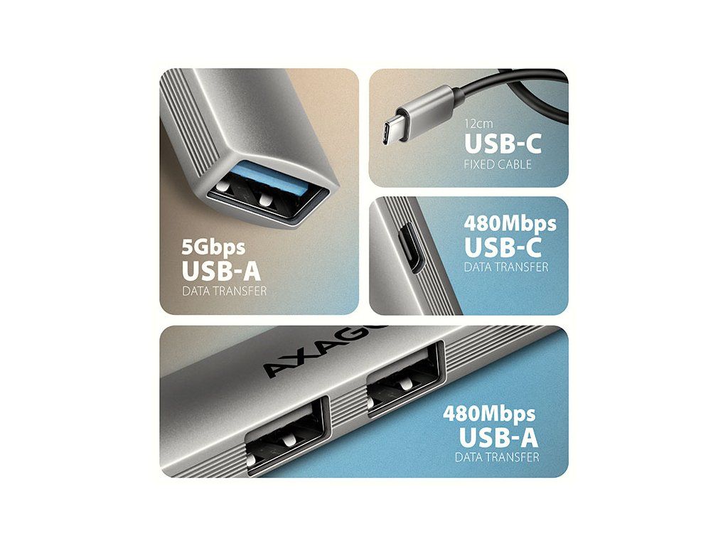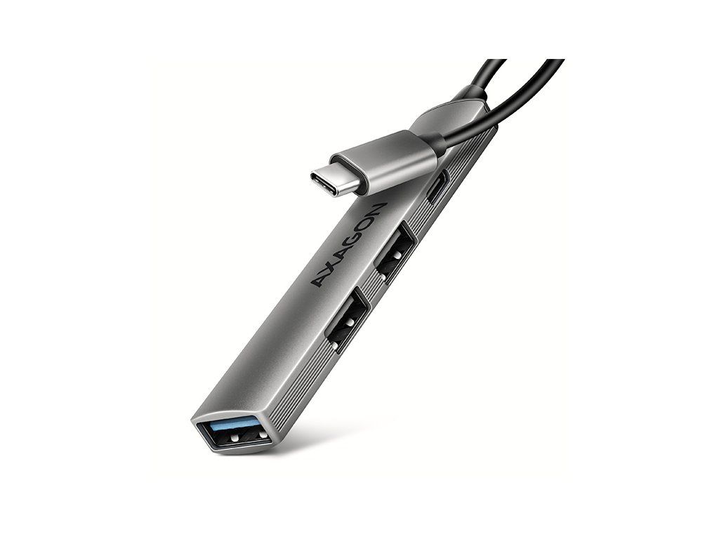 AXAGON HUE-STC, 4x USB ALU STRIP hub, 1x USB-A 5Gbps, 2x USB-A & 1x USB-C 480Mbps, kábel USB-C 12cm HUE-STC