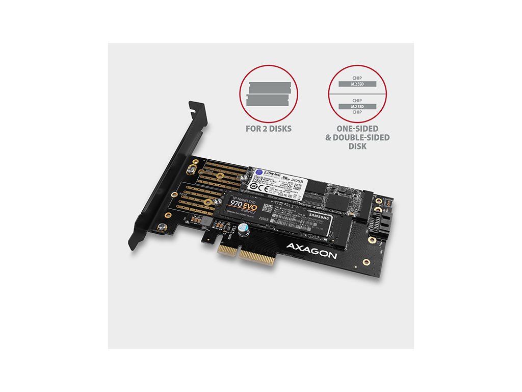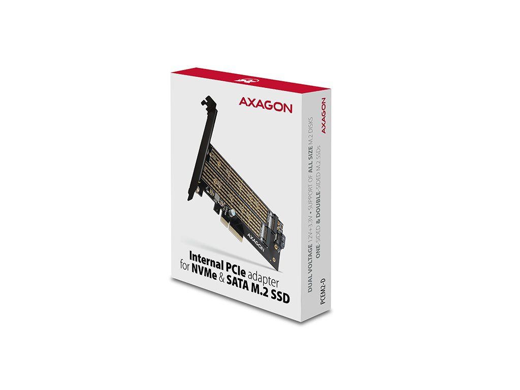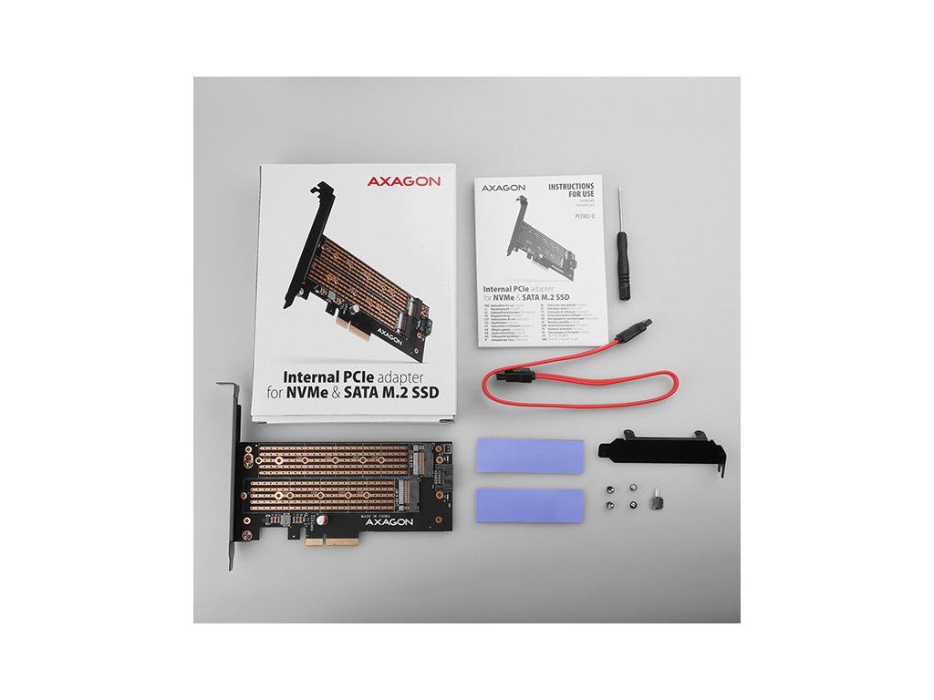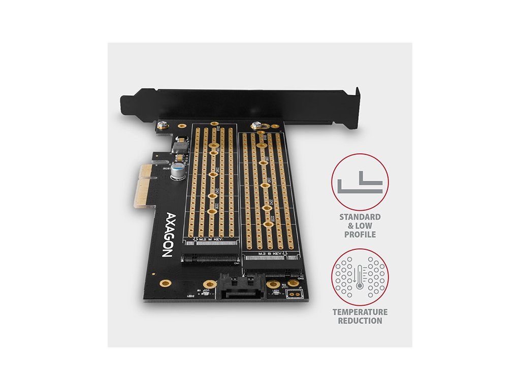 AXAGON PCEM2-D, PCIe x4 - M.2 NVMe M-key + SATA B-key slot adaptér, vrátane. LP PCEM2-D