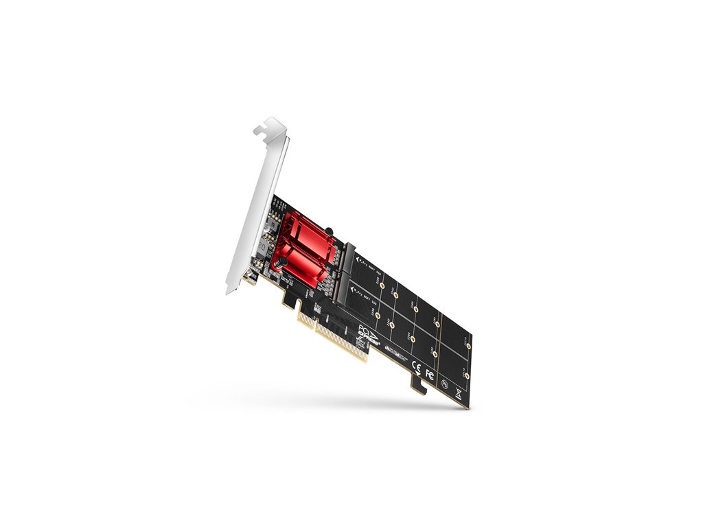 Radič PCI-Express AXAGON PCEM2-ND umožňuje pripojiť dva disky SSD NVMe M.2 k stolnému počítaču a vytvoriť pole RAID. Kvalitné spracovanie, kompaktné rozmery a premyslený dizajn robia z adaptéra ideálnu voľbu pre upgrade stolného počítača, ktorý nie je vybavený M.2 slotom. Poslúži aj v prípade nedostatku slotov M.2. Redukcia je univerzálna a kompatibilná s akoukoľvek základnou doskou a funguje aj na základných doskách bez podpory PCI-Express bifurkácie. Táto jedinečná funkcia je podporená vysokokvalitným čipom spoločnosti Asmedia. Vďaka rozhranie PCI-Express 3.0 kompatibilným s x8 a x16 sloty je možné dosiahnuť maximálne rýchlosti až 4000 MB/s (4 GB/s). Adaptér podporuje použitie NVMe (PCI-Express) M.2 SSD diskov, jednostranných i obojstranných. Redukcia nemá limit kapacity diskov SSD a je možné použiť karty M.2 s veľkosťou až 22x110 mm. Pri osadení kratšími diskami ako 22110 je možné zadnú časť karty oddeliť a zmestí sa tak aj do malého priestoru. Pre montáž adaptéra do nízko profilových skríň je pribalená low profile záslepka. Karta radiča M.2 má tiež integrovaný zámok PCI-Express slotu slúžiaci pre lepšie uchytenie v PCIe slote. Zámok je možné v prípade potreby ľahko odlomiť. Adaptér PCIe podporuje SW RAID, ktorý možno vytvoriť pomocou príslušného softvéru alebo pomocou integrovaných nástrojov v operačnom systéme. Nastavením RAID 1 dosiahnete účinnú ochranu údajov prostredníctvom zrkadlenia. Čip je chladený výkonným pasívnym chladičom. Na chladenie diskov M.2 možno použiť chladiče so šírkou do 22 mm, vhodné sú AXAGON M.2 chladiče CLR-M2L3, CLR-M2L6 a CLR-M2L10. Indikácia LED indikuje pripojenie alebo prenos dát v slote M.2. Inštalácia je úplne automatická, zvládne ju každý. Vstup: • Rozhranie PCI-Express 3.0, kompatibilné s PCI-Express 4.0 / 3.0 / 2.1 / 2.0 / 1.1 / 1.0a. • Počet liniek 8-Lane, kompatibilný s x8 / x16 PCIe sloty. Výstup: • 2x NGFF 75-pinový M-key slot pre montáž NVMe (PCI-Express) M.2 SSD disku. Ďalšie vlastnosti: • Plná podpora Plug and Play. • Súčasná prevádzka oboch diskov aj na základných doskách bez podpory PCIe Bifurcation. • Podpora M.2 diskov rozmerov - 2230, 2242, 2260, 2280 a 22110 mm. • Odnímateľná zadná strana karty umožňuje použitie v malých priestoroch. V tomto prípade nie je možné pripojiť disk 22110. • Podpora M key alebo B+M key NVMe (PCI-Express) M.2 SSD diskov bez obmedzenia maximálnej kapacity. • Podpora jednostranných aj obojstranných M.2 diskov. • Podpora bootovania z SSD karty. • Skutočná priepustnosť / prenosová rýchlosť stanice okolo 3500 MB/s (3.5 GB/s) je spôsobená limitmi rozhrania PCI-Express 3.0. • Podpora SW RAID - umožňuje vytvoriť softvérový RAID pomocou príslušného softvéru alebo nástrojov v operačnom systéme. • Integrovaný zámok slotu PCI-E na lepšie uchytenie karty. V prípade potreby sa dá oddeliť. • Možnosť montáže chladičov do oboch slotov. Maximálna šírka chladiča je 22 mm - kompatibilný s chladičmi AXAGON CLR-M2L3, CLR-M2L6 a CLR-M2L10. • Nie je potrebné inštalovať žiadne ovládače. • Adaptér je napájaný priamo z PCI-Express zbernice, nie je nutné externé napájanie. • Dvojitá indikácia LED signalizuje pripojenie alebo prenos dát v slotoch M.2. • Rozmery 180 x 64 x 20 mm. • Hmotnosť 75 g. Podporované operačné systémy: • MS Windows 7 / 8 / 8.1 / 10 / 11 a novší, Windows Server 2008 R2 / 2012 / 2016 / 2019 / 2022 (podporované všetky 32- i 64-bitové verzie OS Windows), Linux s jadrom 2.6.31 a vyšším. • Pozn.: Pri použití s Windows 7 je nutné overiť u výrobca M.2 SSD disku podporu tohto OS a dostupnosť ovládače. Balenie obsahuje: • PCI-Express adaptér so štandardnou záslepkou, • low profile záslepku • montážny materiál, • tlačený inštalačný návod CZ / DE / DK / ENG / ESP / FIN / FR / GR / HR / HU / IT / NL / PL / PT / RO / RU / SK / SWE / TR / BG / CN / ARA, • balené kartónovej krabičke s prehľadne uvedenými parametrami.Dodatočné parametre