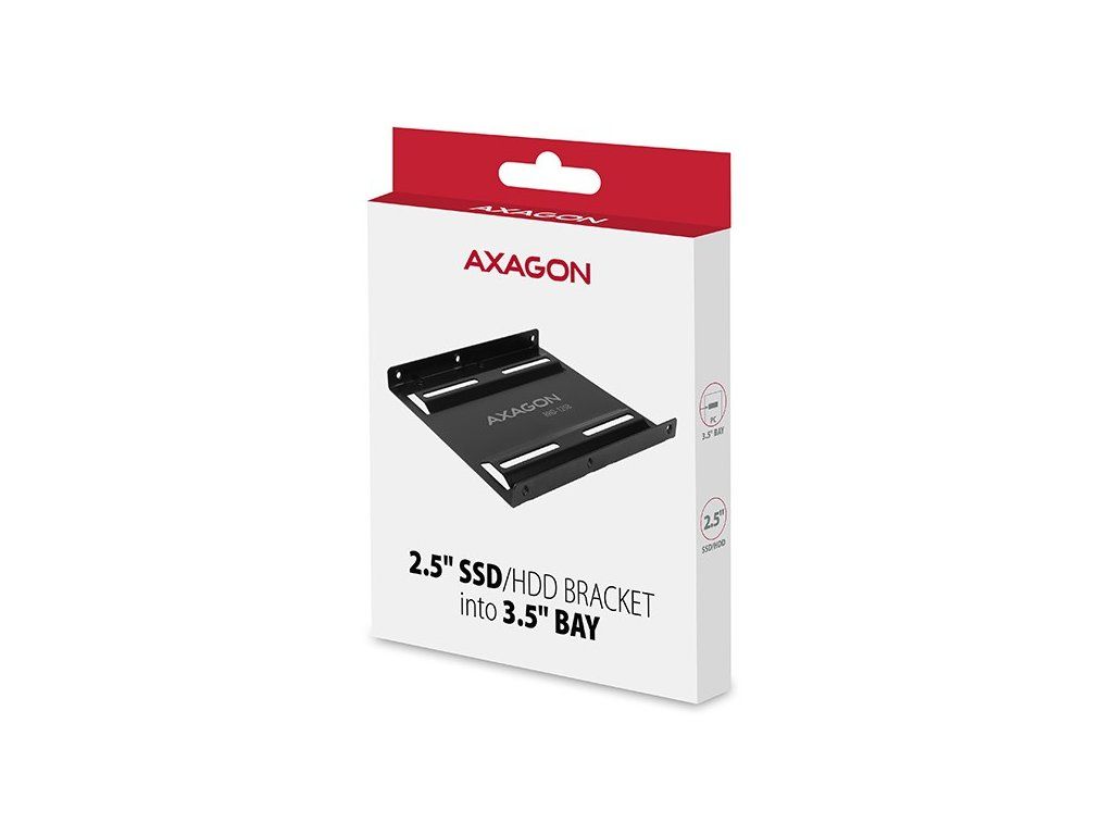 Kovový rám AXAGON RHD-125B umožňuje montáž 2.5" HDD alebo SSD do 3.5" pozícia PC skrinky. Táto jednoduchá redukcia elegantne rieši problém umiestnenia 2.5" pevný disk alebo SSD v štandardnej počítačovej skrini. Možno použiť všetky SSD a pevné disky, výška disku nie je obmedzená.