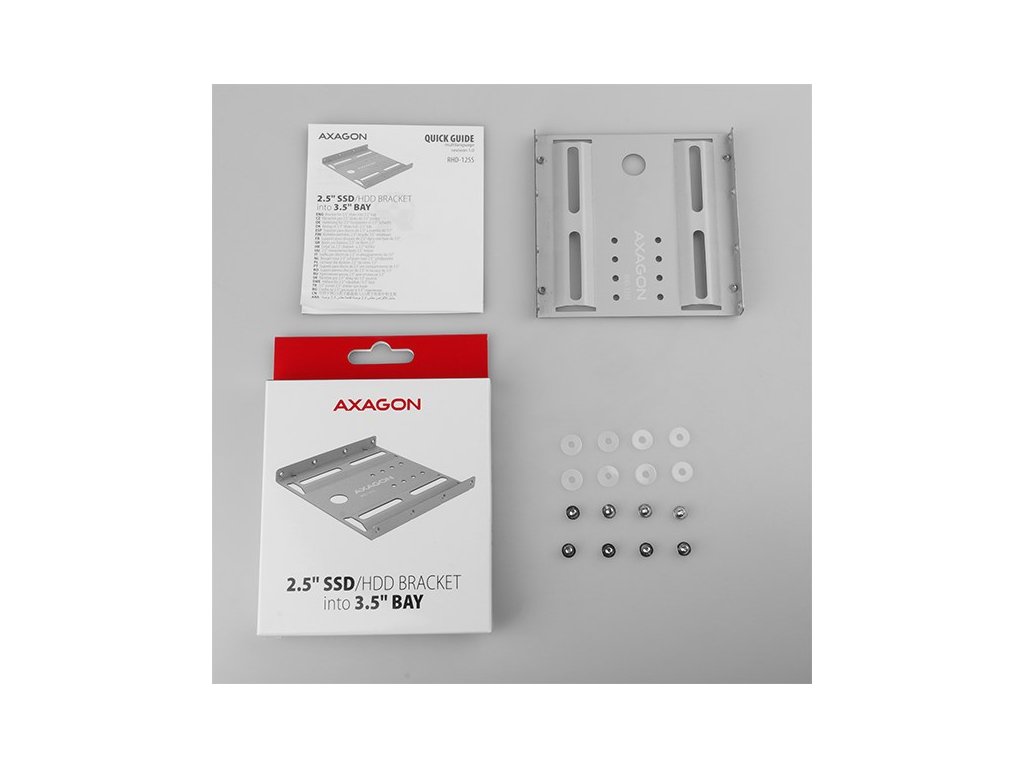 Kovový rám zariadenia AXAGON RHD-125S umožňuje montáž 2.5" HDD alebo SSD do 3.5" pozícia PC skrinky. Táto jednoduchá redukcia elegantne rieši problém umiestnenia 2.5" pevný disk alebo SSD v štandardnej počítačovej skrini. Možno použiť všetky SSD a pevné disky, výška disku nie je obmedzená.