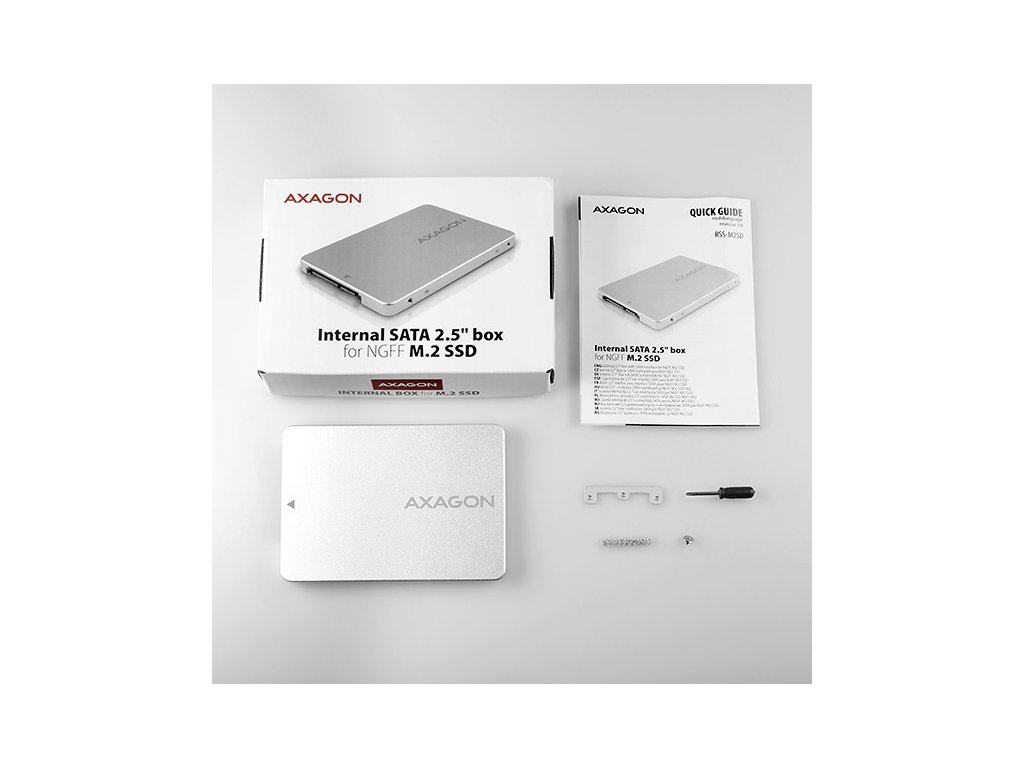 AXAGON RSS-M2SD, SATA - M.2 SATA SSD, interný 2.5'' ALU box, strieborný RSS-M2SD