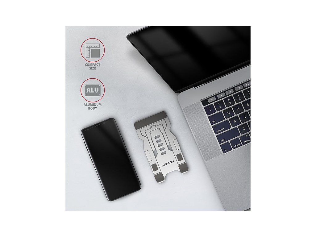Skládací stojan AXAGON STND-M vám pomůže mít displej vašeho telefonu nebo tabletu stále na očích. Stojan má univerzální použití pro zařízení od 4'' až do 10.5''. Přizpůsobení sklonu stojánku dle vašeho přání umožní pět nastavitelných pozic, a to při horizontální i vertikální orientaci telefonu / tabletu. Podstavec je vyroben z kvalitního a pevného hliníku a disponuje protiskluzovou úpravou, která zabrání nežádoucím pohybům. Zároveň ochrání povrch vašeho zařízení i povrch pod stojanem. Tyto vlastnosti zaručí perfektní stabilitu pro váš smartphone nebo tablet. Díky kompaktním rozměrům a magnetům, které fixují stojan ve složené poloze, je možné jej v kapesní velikosti pohodlně přenášet. Elegantní design stojanu hezky doplní například váš pracovní stůl. Zároveň byl při jeho výrobě kladen důraz na praktičnost. Stojánek je vybavený výklopnými držáky pro podložení telefonu, které umožní nabíjení zařízení i při vertikální orientaci. Vlastnosti: • Lehká a pevná hliníková konstrukce. • Určeno pro telefony i tablety. • Protiskluzová úprava, která zároveň chrání zařízení od poškrábání. • Pro zařízení s displejem od 4'' do 10.5''. • 5 nastavitelných uhlů sklonu (40° - 70°). • Dvě polohy pro zařízení – základní a zvýšená. • Vertikální nebo horizontální orientace zařízení. • Rozměry 70 x 130 x 8 (Š x V x H), hmotnost 66 g. Balení v kartonové krabičce obsahuje: • Stojan pro telefon / tablet.Dodatočné parametre