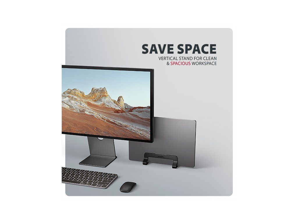 AXAGON STND-VB je elegantní a praktický stojan na notebook či tablet, který umožňuje vertikální vložení zařízení a vnáší do pracovního prostoru pořádek a více volného místa. Hodí se pro zařízení s úhlopříčkou od 10'' do 17.3''. Kompaktní a snadno přenosné provedení zajišťuje pohodlné použití doma, v kanceláři i na cestách. Výhodou je nastavitelné rozpětí stojanu od 9.5 mm do 25.5 mm, díky kterému do něj snadno vložíte většinu notebooků. Nastavenou šířku spolehlivě udrží broušený regulační šroub, který pevně zafixuje požadovanou polohu. Podstavec je vyroben z hliníkových odlitků garantujících dlouhou životnost a spolehlivost. Díky protiskluzové úpravě se nemusíte obávat nežádoucích pohybů – vaše zařízení zůstane pevně na svém místě, a to bez poškození povrchu notebooku či podložky. Tyto pečlivě navržené vlastnosti zaručují perfektní stabilitu pro váš notebook, což vám poskytne klid a pohodlí při každodenním používání. Kompaktní rozměry stojanu umožňují pohodlné přenášení kamkoli potřebujete. Jeho elegantní design v černé barvě nejen stylově doplní váš pracovní stůl, ale také přináší praktické funkce, které oceníte při každodenním používání. Vertikální stojan poskytuje notebooku více prostoru kolem ventilátorů, což zajišťuje účinnější odvod tepla a pomáhá udržet stabilní výkon i delší životnost zařízení. Zároveň udržuje klávesnici čistší a chrání notebook před prachem i náhodným politím, protože je zvednutý nad pracovní plochu. Vlastnosti: • Lehká a pevná kovová konstrukce. • Protiskluzová úprava, která zároveň chrání zařízení od poškrábání. • Vhodný pro 10''–17.3'' notebooky nebo jiná zařízení. • Nastavitelná šířka 9.5–25.5 mm. • Kompaktní rozměry. • Držák notebooku umožňuje lepší odvod tepla. • Rozměry: 150 × 50 × 80 mm (Š × H × V). • Hmotnost: 177 g. Balení v kartonové krabičce obsahuje: • Stojan na notebook/tablet, • černá verze provedení.Dodatočné parametre