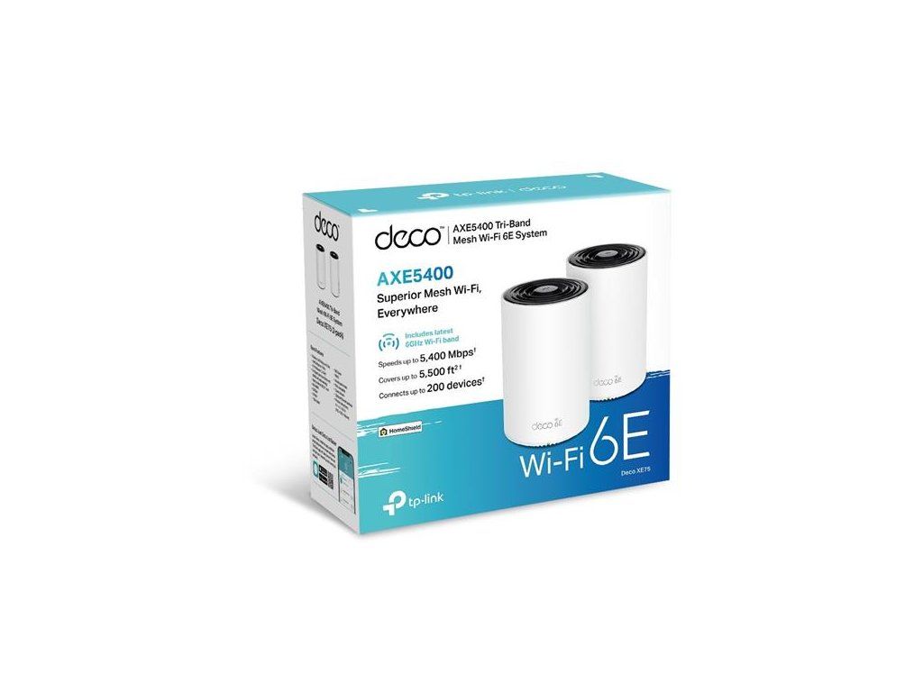 AXE5400 Whole Home Mesh Wi-Fi 6E Unit(Tri-Band) SPEED: 574 Mbps at 2.4 GHz + 2402 Mbps at 5 GHz + 2402 Mbps at 6 GHz SPE Deco XE75(1-pack)