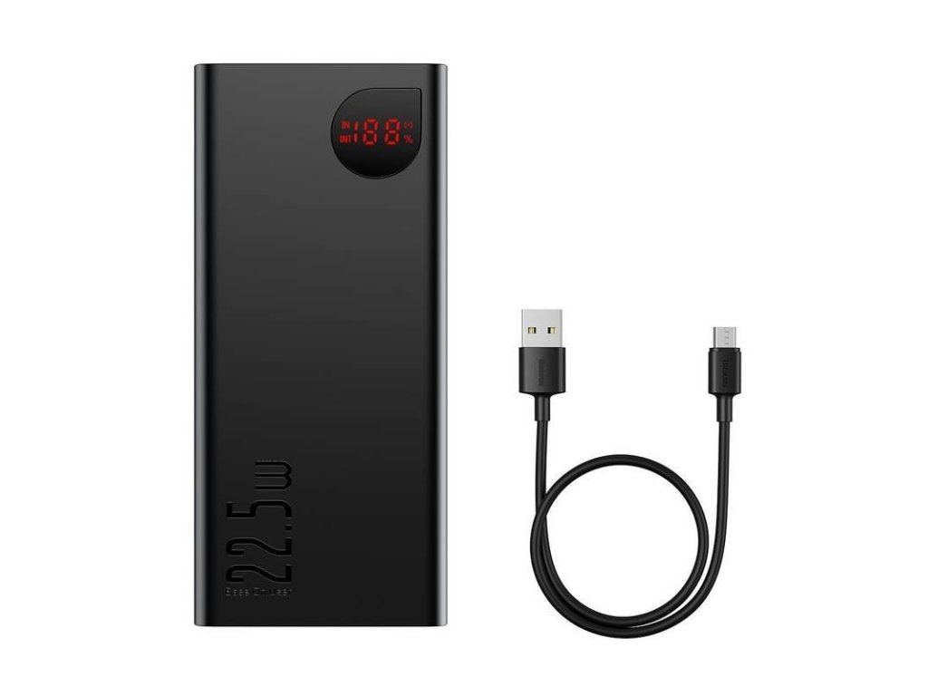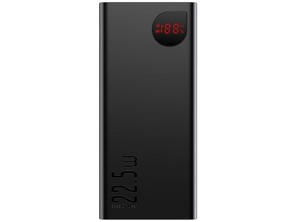 Baseus Adaman Digital Display Powerbanka 40000mAh 22.5W Black Baseus Adaman je praktická powerbanka s kapacitou 40 000 mAh a výkonem až 22,5W, s níž si můžete jednoduše dobít zařízení i tam, kde není k dispozici elektřina. Disponuje dvěma vstupními (microUSB, USB-C) a čtyřmi výstupními (3xUSB-A, 1xUSB-C) USB porty. Podporuje obousměrné rychlé nabíjení ve standardu Power Delivery 3.0 + Quick Charge 3.0. Praktický je zde pak i integrovaný digitální displej, který vám ukazuje aktuální stav kapacity powerbanky. Součástí balení je nabíjecí USB-A/USB-C kabel. Vlastnosti: *Kapacita 40 000 mAh *Podpora QC 3.0 a PD 3.0 *Součástí balení nabíjecí USB-A/USB-C kabel (30cm) *Integrovaný digitální displej *Vstup: MicroUSB: 5V/2A , 9V/2A USB-C: 5V/3A , 9V/2A *Výstup: USB-C: 5V/3A , 9V/2,22A , 12V/1,5A USB-A1/A2: 4,5V/5A , 5V/4,5A , 5V/3A , 9V/2A , 12V/1,5A USB-A3: 5V/2,4A *Celkový výstup 5V/3ADodatočné parametre