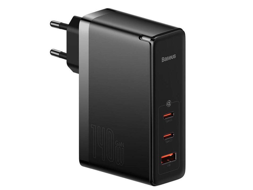 Popis produktu: Baseus GaN5 Pro Wall Charger 2xUSB-C + USB 140W EU Black - velmi výkonná sítová nabíjecka s výkonem až 140W pri zachování velmi kompaktních rozmeru. Je vybavena konektory 2x USB-C a 1x USB-A, podporuje nabíjecí protokoly USB Power Delivery 3.1, Quick Charge i PPS. Ideální pro moderní výkonné notebooky, tablety, smartphony a další. Díky technologii GaN je menší o 25% a lehcí o 30% než standardní 140W adaptér od Applu, který má jen jeden konektor.Dodatočné parametre