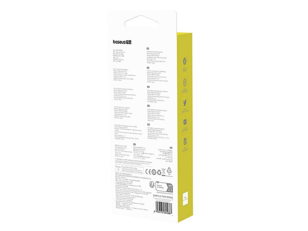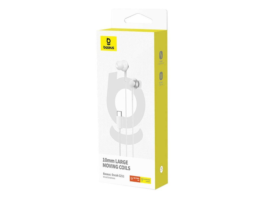 Baseus Encok CZ11 kabelová sluchátka * ovládání na kabelu Technické parametry Měnič: 10mm Frekvenční rozsah: 20Hz-20kHz Mikrofon: ano Rozhraní: USB-C Typ připojení: drátové Délka kabelu: 1,1m Barva: bílá Požadavky na systém: volný port USB-CDodatočné parametre