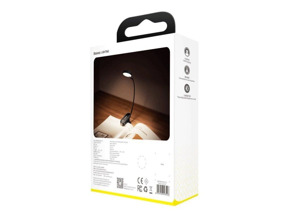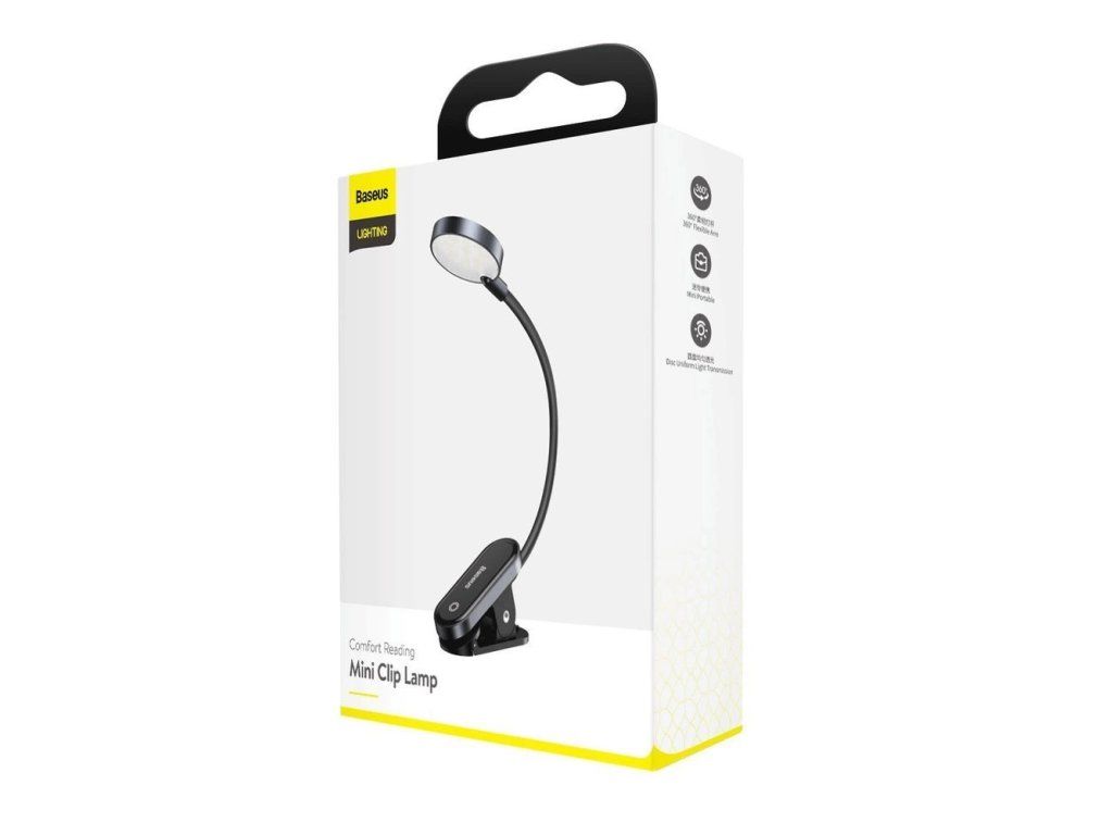 Baseus mini LED lamp s klipsem Vlastnosti * 3 úrovně osvětlení * výdrž baterie 5 až 24 hodin (v závislosti na intenzitě osvětlení) Technické parametry Vstupní proud: 5V Barva světla: 4000K Výkon: 3W Kapacita baterie: 350mAh Doba nabíjení: 2 hodiny Barva: tmavěšedá Rozměry: 290x43,8x30mm Hmotnost: 62g Záruka: 2 rokyDodatočné parametre