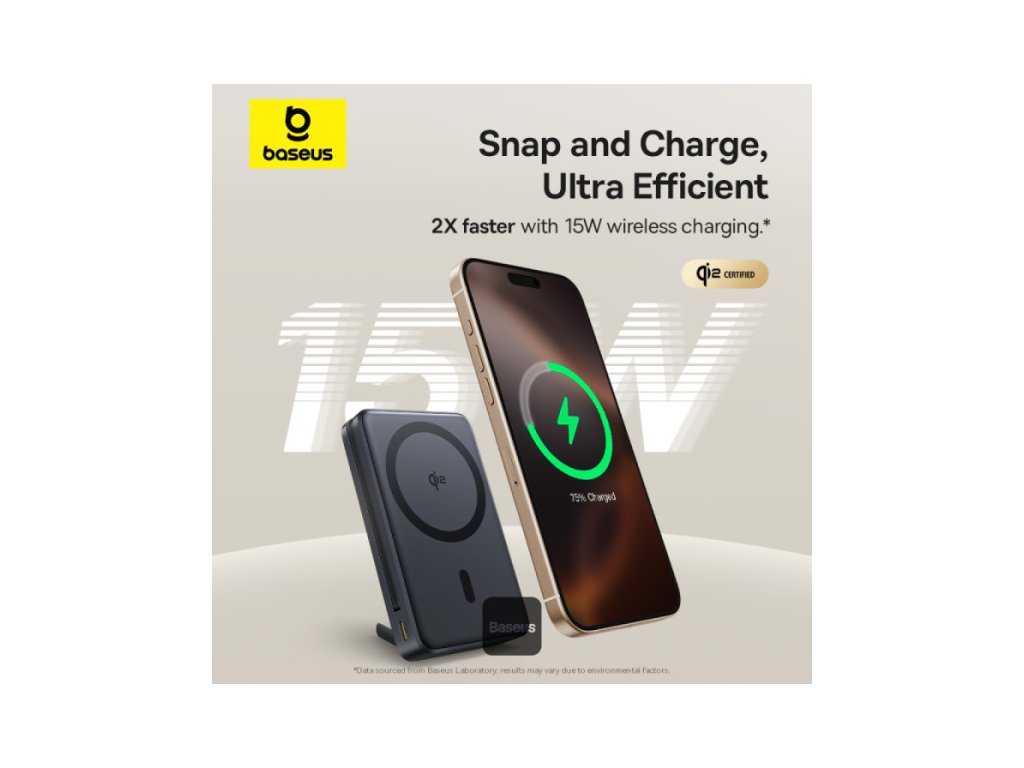Powerbanka Baseus Nomos 3 v 1 10 000 mAh – 15W bezdrátová nabíječka s certifikací Qi2, vestavěný dvoucestný kabel pro rychlé nabíjení 45 W, port typu C, stojánek – černá Zažijte bezkonkurenční pohodlí nabíjení s Power Bank Baseus Nomos Qi2, přenosnou nabíječkou 3 v 1 navrženou pro váš rychlý životní styl. Díky kapacitě 10 000 mAh, 15W bezdrátovému nabíjení s certifikací Qi2 a 45W rychlému nabíjení USB-C tato powerbanka zajistí, že vaše zařízení budou vždy připravena, ať už doma, v kanceláři nebo na cestách. *Bezdrátové nabíjení Qi2: 15W rychlé bezdrátové nabíjení pro zařízení MagSafe a Qi. *Vestavěný 45W kabel USB-C: Rychlý 45W výstup a 30W vstup. *Charge 3 Devices: Duální USB-C porty a bezdrátová podložka pro současné nabíjení. *Konstrukce stojanu: Skládací stojan pro použití bez použití rukou. *Přenosný: Kompaktní (230 g, 10,6 x 6,78 x 1,96 cm) a snadno se přenáší. *Inteligentní displej: Digitální LED displej zobrazuje stav nabíjení v reálném čase. *Odvod tepla: Chrání zařízení se stabilní regulací teploty.Dodatočné parametre