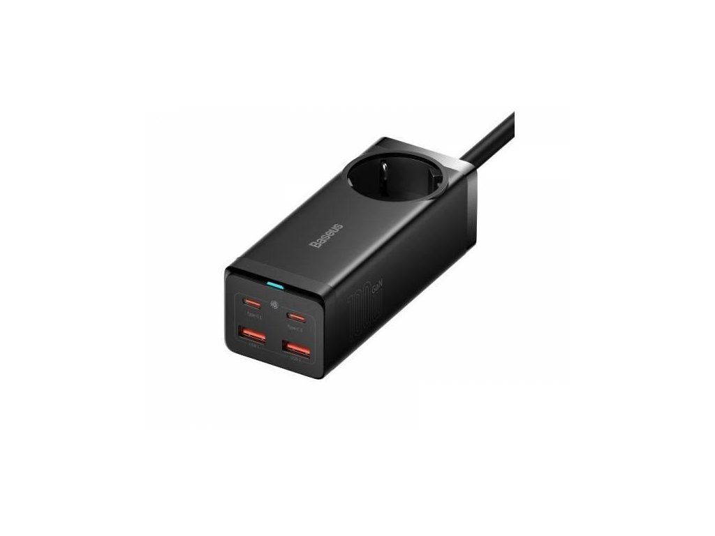Vysokorychlostní stolní nabíjecí adaptér Baseuss technologií GaN. Vyroben z kvalitního pevného polykarbonátu, se pěti výstupními porty s výkonem až 100W. Adaptér disponuje ochranou proti zkratu, přepětí, přetížení a přehřátí. Najednou můžete nabíjet 5 zařízení - ve dvou USB-C portech, dvou USB-A portech a AC zásuvce. • pro: mobilní zařízení • materiál: polykarbonát, ABS • vstup 200-240V, 50/60 Hz, 2,5A Max • USB-C 1/2 výstup: 5V/3A, 9V/3A, 12V/3A, 15V/3A, 20V/5A • USB-A 1/2 výstup: 5V/3A, 9V/3A, 12V/3A, 20V/3A • USB-C 1 + USB-C 2: 65W + 30W/30W + 65W • USB-A 1 + USB-A 2: 15W • USB-C 1/2 + USB-A 1/2: 65W + 30W • USB-C 1 + USB-C 2 + USB-A 1/2: 60W + 20W + 18W • Délka kabelu: 1,5m • Rozměry: 120 x 48 x 41 mm • Hmotnost: 513g • Kabel: USB-C na USB-C (110cm, 100W)Dodatočné parametre