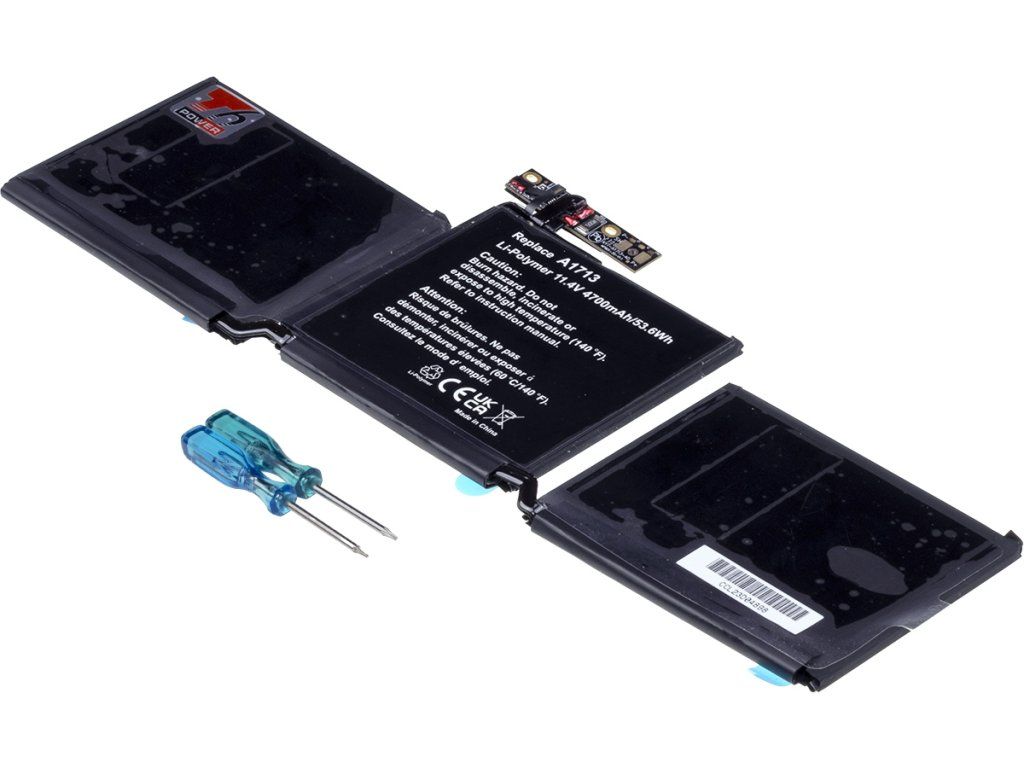Typ: Li-poly Kapacita: 4700 mAh (53.6 Wh) Barva: černá Napětí: 11.4 V Rozměry: 289x108x5 mm Hmotnost: 230 g Produktová čísla: A1713, 020-00946 Kompatibilní modely: Apple MacBook Pro 13'' A1708 Late 2016, Apple MacBook Pro 13'' A1708 Mid 2017, Apple EMC 2978, Apple EMC 3164 Šroubováky jsou součástí baleníDodatočné parametre