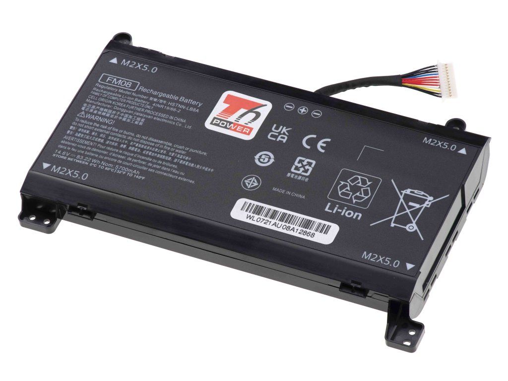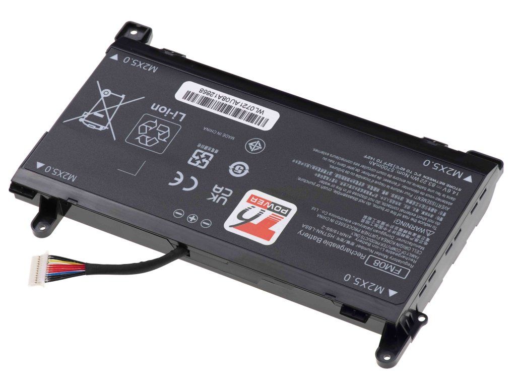 2 typy baterií, zkontrolujte počet pinů dle původní baterie - 12pin konektor Typ: Li-ion Kapacita: 5973 mAh (86 Wh) Barva: černá Napětí: 14.4 V Rozměry: 166x104x20 mm Hmotnost: 425 g Produktová čísla: FM08, 922752-421, 922976-855, HSTNN-LB8A, TPN-Q195 Kompatibilní modely: Hewlett Packard Omen 17-an000 GTX 1050 serie, Hewlett Packard Omen 17-an100 GTX 1050 serieDodatočné parametre