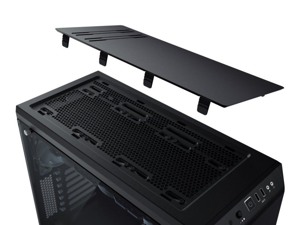 Konektory na předním panelu: 2 x USB 3.0, 1 x výstup pro sluchátka, 1 x vstup mikrofonu, regulátor otáček ventilátorů