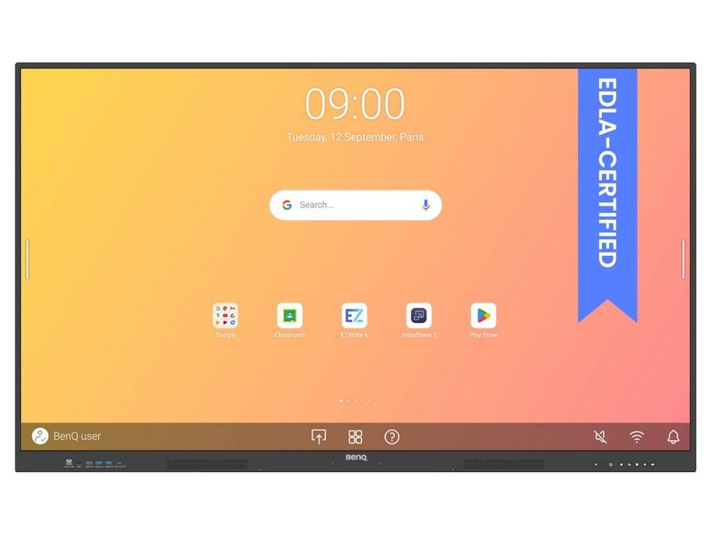 Zařízení běží na Android 14.0 s EDLA certifikací a nabízí přímý přístup ke Google Play Store, službám Google i Microsoft. S 8GB operační pamětí a 64GB úložištěm poskytuje dostatečný výkon pro náročné vzdělávací aplikace. Cloudové řešení BenQ DMS (Device Management Solution) umožňuje centralizovanou správu všech displejů z jediného dashboardu včetně vzdálené instalace aplikací, plánování aktualizací a monitorování spotřeby energie.