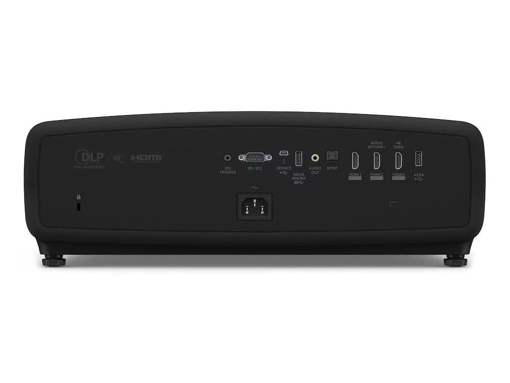 Rozhraní: 3× HDMI, 2× USB 2.0, 1× audio výstup, 1× optický audio výstup, mini USB-B (pro servisní účely), 1× RS-232, 1× 12V Trigger