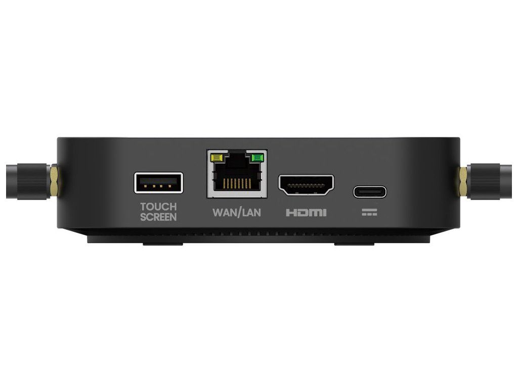 Konektory: USB-C (tlačítko), USB pro Touchback, HDMI výstup, RJ-45, USB-C napájení (přijímač)