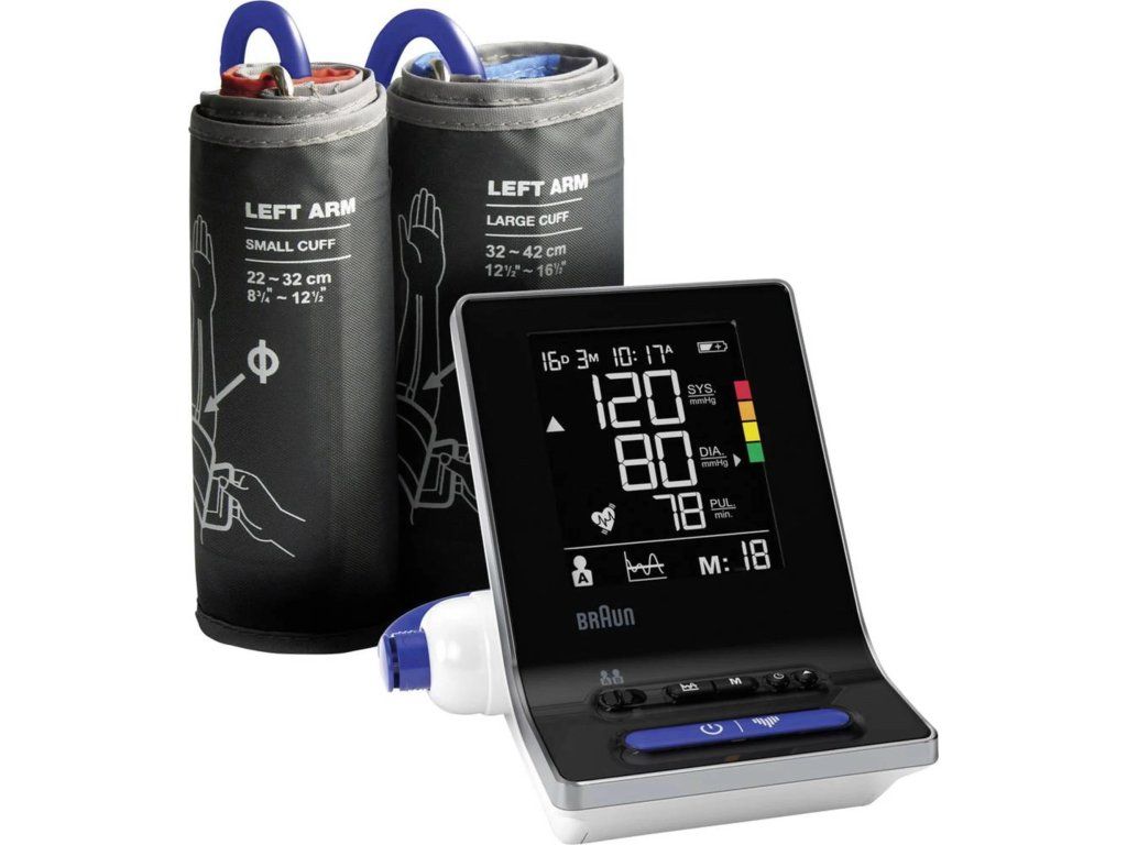 S tlakomestrom Braun ExactFit™ 3 si teraz môžete merať krvný tlak pohodlne a presne z domova. Ponúka overenú profesionálnu presnosť podľa metódy Európskej spoločnosti pre hypertenziu (ESH). Ponúka 2 veľkosti manžety, ktoré zaručujú čo najpresnejšie meranie. Farby odlíšený displej merania vám pomôže rýchlo vyhodnotiť výsledky. Prístroj ponúka funkciu priemeru posledných 3 meraní, takže môžete sledovať zdravie srdca na dlhšiu dobu. Pre každého zo 2 používateľov je možné uložiť až 80 meraní.