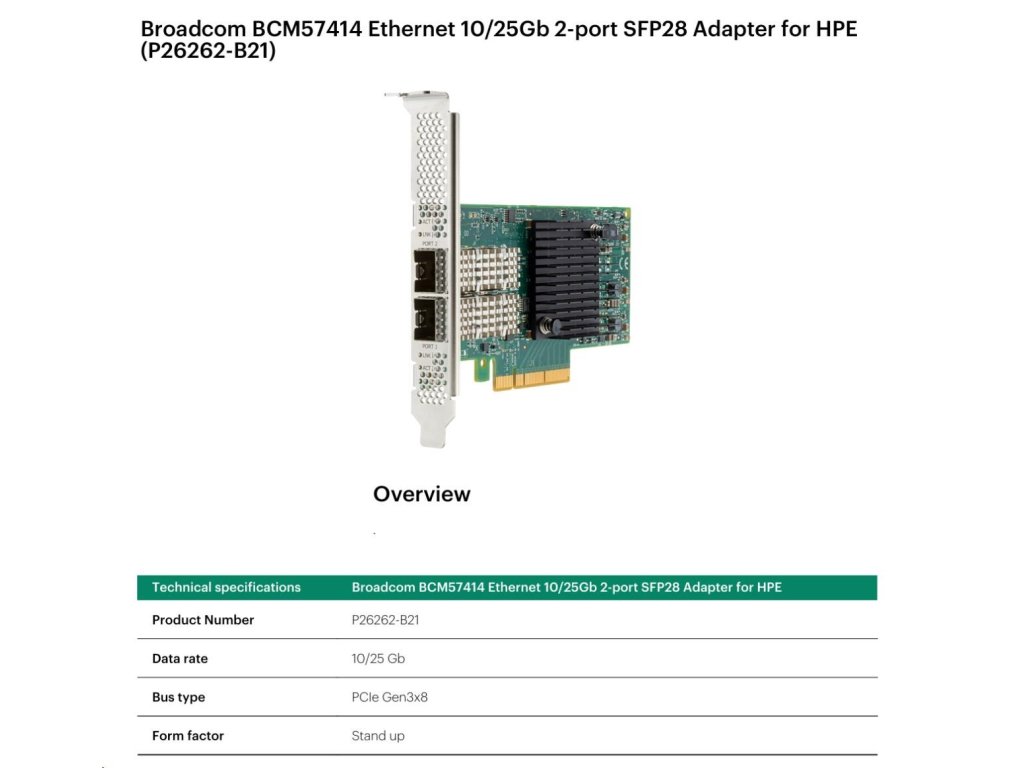 Broadcom BCM57414 Ethernet 10/25Gb 2-port SFP28 Adapter P26262-B21