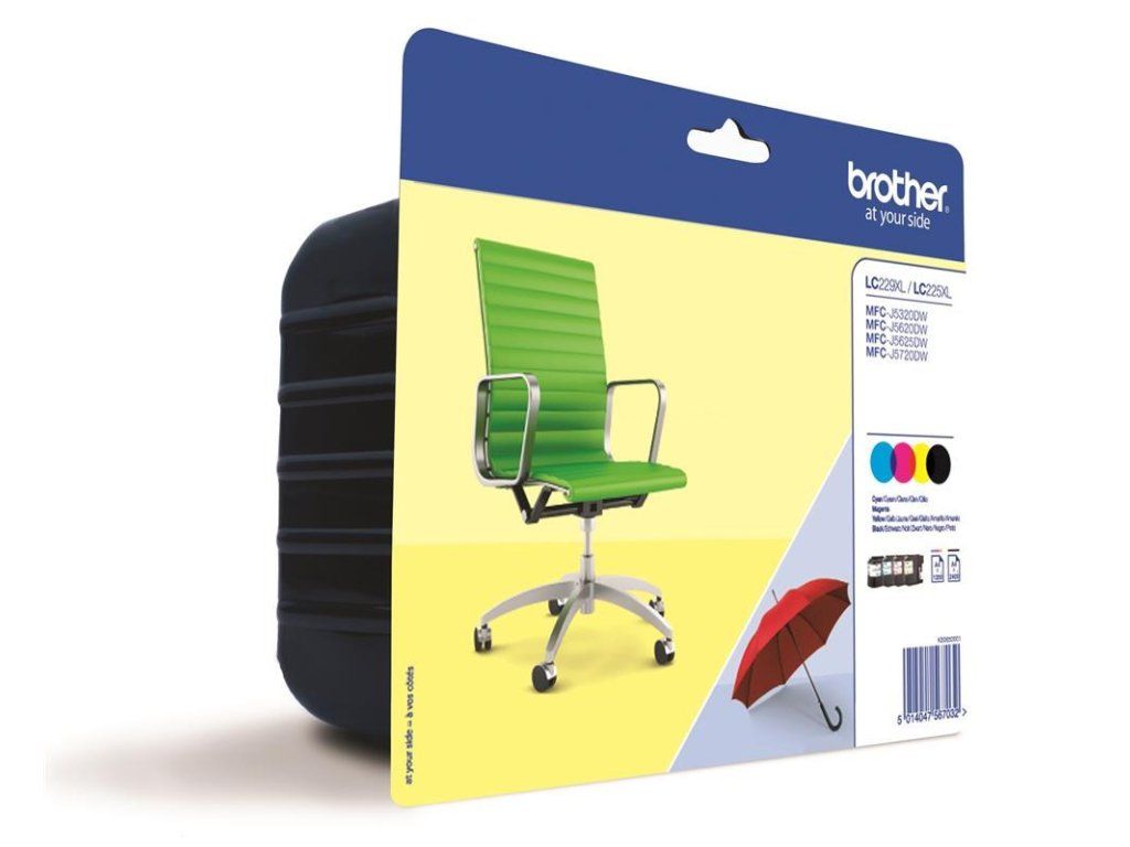 Brother LC-229XLVALBP CMYK; Multipack originálních inkoustových náplní pro multifunkční barevné tiskárny Brother s kapacitou přibližně 2400 stran (černá) a 1200 stran (barevně). ZÁKLADNÍ SPECIFIKACE; Pro tiskárny: Brother MFC-J5320DW, MFC-J5620DW, MFC...
