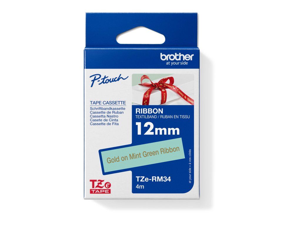 Originální pásková kazeta Brother TZe-RM34 - zlatý tisk na mátové, šířka 12 mm Zapojte svou fantazii osobním přístupem k dárkům, kartám a řemeslným výrobkům pomocí originální pásky Brother TZe-RM34. S TZe-RM34 se můžete spolehnout na rychlý a spolehlivý výstup a na ostrý a profesionální standard tisku. Kompatibilní s tiskárnami štítků P-touch s logem TZ nebo TZe na krytu kazety s páskou. *Šířka 12 mm, délka 4 m *Vysoce kvalitní originální kazeta Brother *Snadno čitelné výtisky Tato textilní stuha bez lepící vrstvy s luxusním lesklým povrchem je ideální pro balení dárků a řemeslných výrobků.Dodatočné parametre