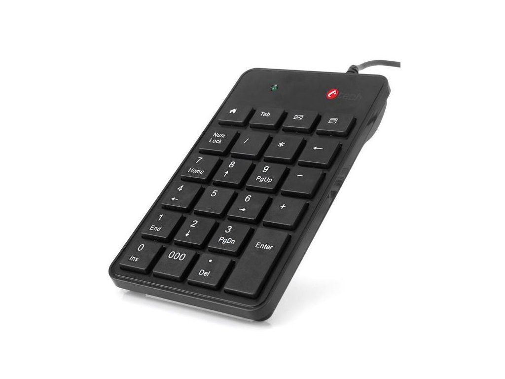Numerická klávesnica USB s 23 klávesmi vrátane 4 kancelárskych klávesov: domov, karta, e-mail a kalkulačka.