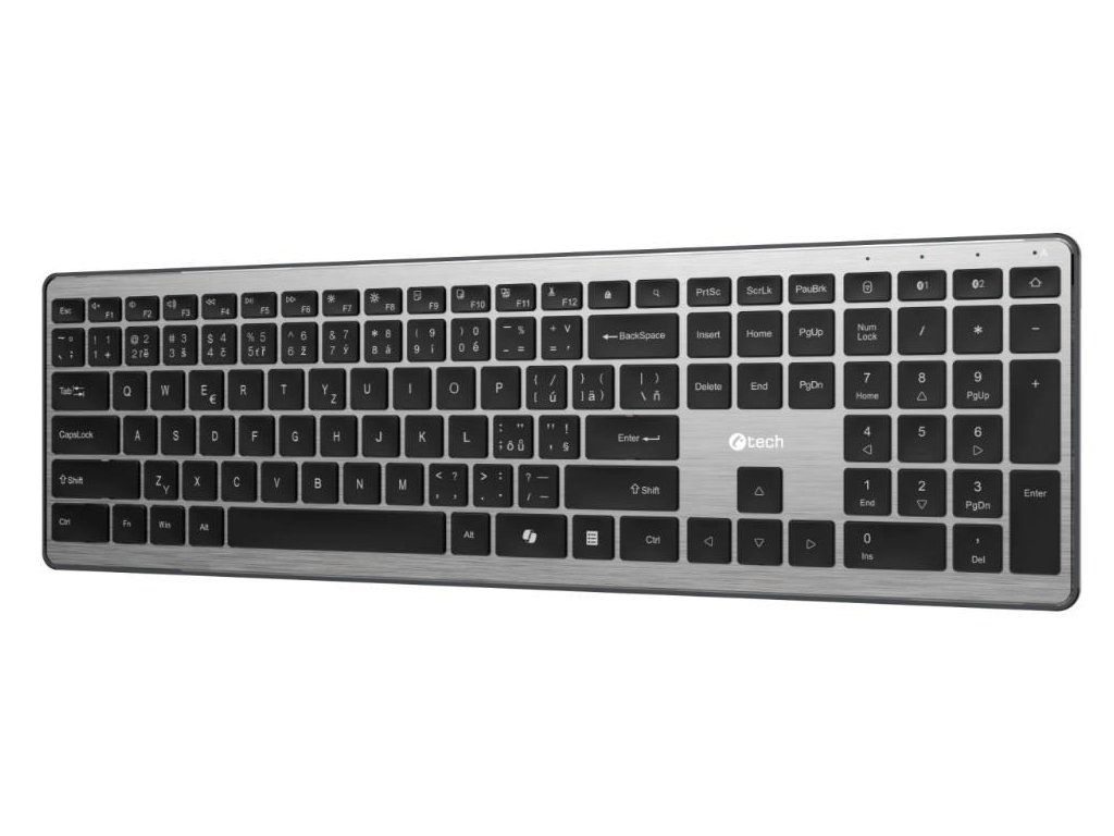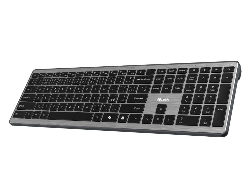 C-TECH Klávesnice Quallis KB-118 Dual mode, bezdrátová, BT5.0 + 2,4GHz, scissors tlačítka, USB nano receiver, CZ/SK KB-118
