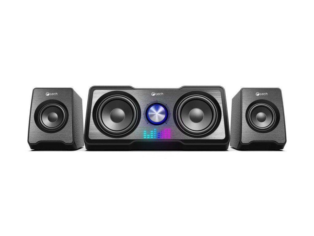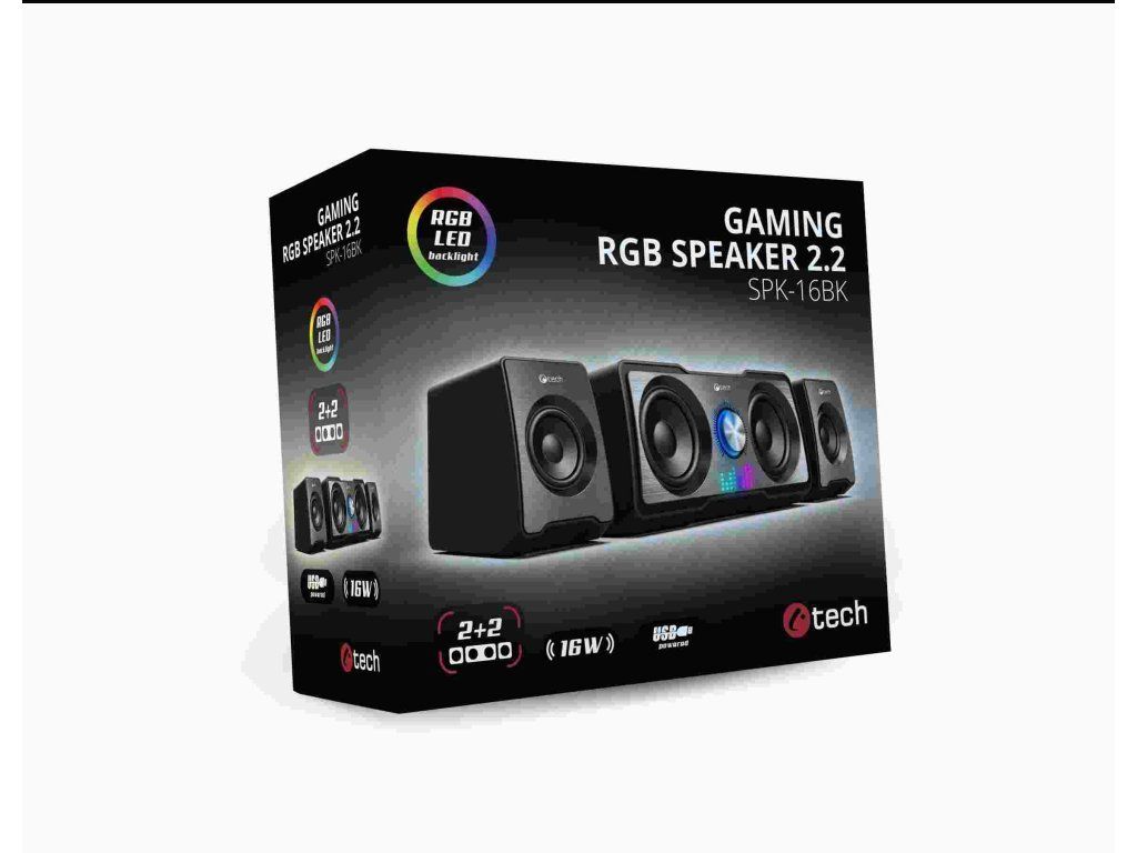 Kompaktné PC reproduktory C-tech SPK-16WH 2.2 vám sprostredkujú kvalitný zvuk s výkonom 16W a frekvenčným rozsahom 150-20kHz. Vďaka unikátnej kombinácii meničov 2+2 je reprodukovaný zvuk bohatší a viac dynamický, takže si ho využijete nielen pri počúvaní obľúbených skladieb, ale aj pri hraní hier. O jedinečnú atmosféru pri počúvaní hudby sa postará automatické RGB podsvietenie. K ovládaniu hlasitosti poslúži regulátor nachádzajúci sa na jednom z reproduktorov. Tento regulátor slúži na zapnutie a vypnutie zariadenia. Pripojenie sústavy k zariadeniam zabezpečí kábel s 3,5mm jackom, napájanie zase USB kábel.