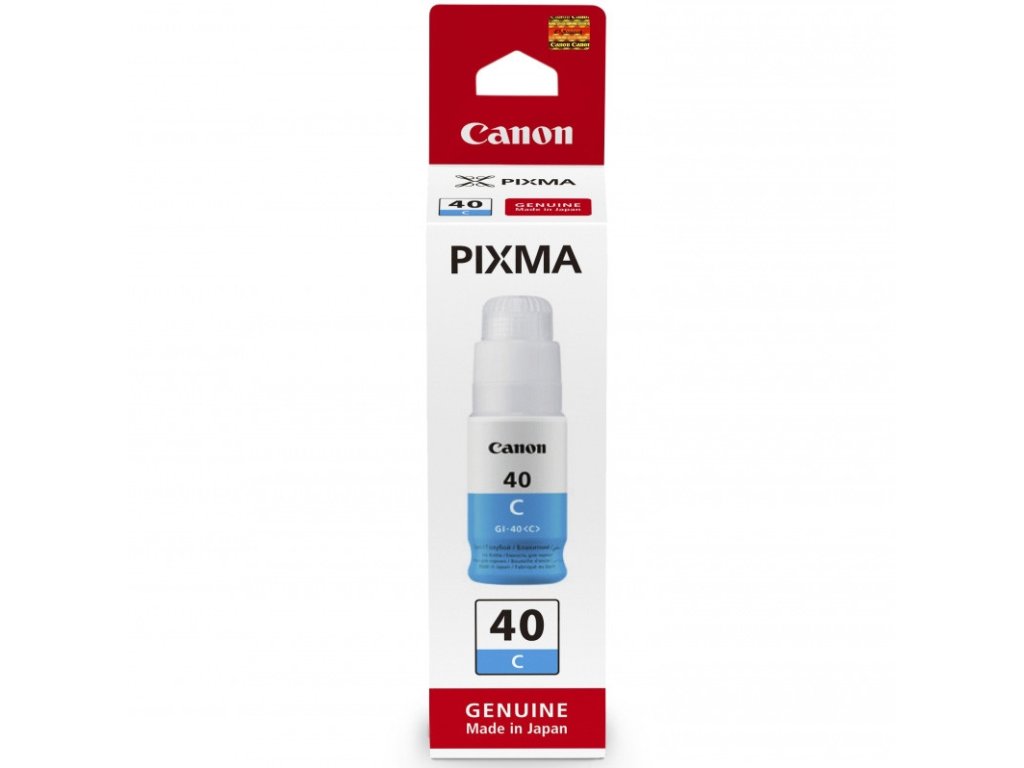 Originální inkoustová náplň, Canon GI-40 Cyan Výtěžnost 7 700 listů Kompatibilní s: PIXMA G6040 PIXMA G5040 PIXMA GM2040 PIXMA G7040 PIXMA GM4040Dodatočné parametre