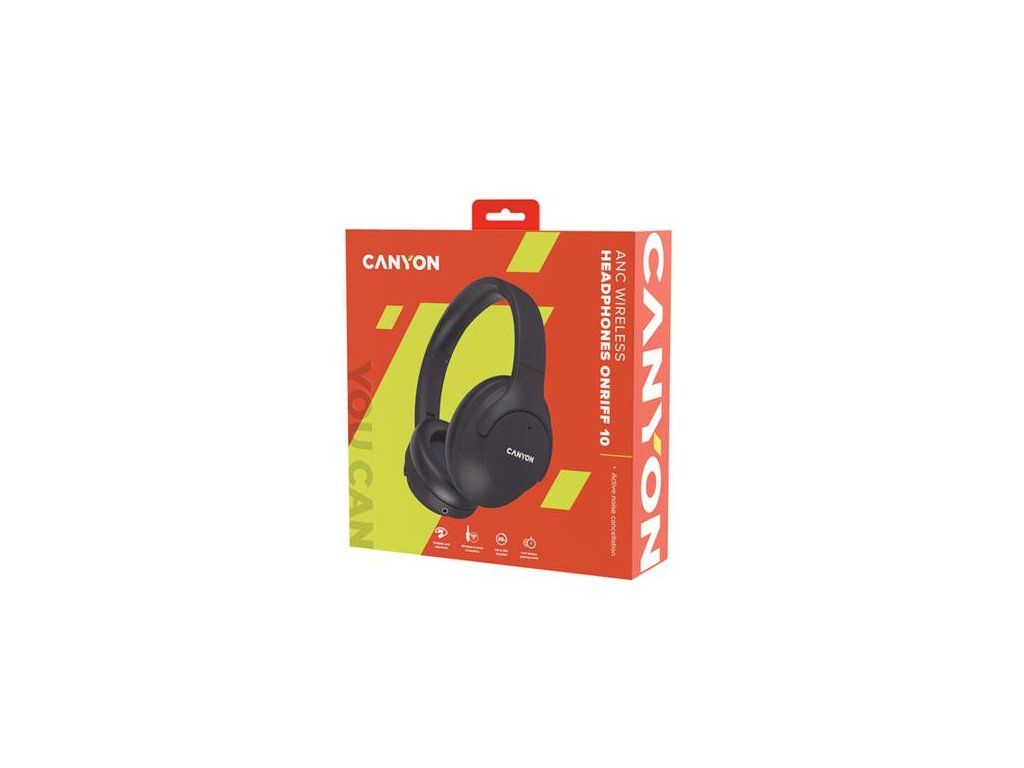 Canyon BTHS-10, OnRiff 10 Bluetooth bezdrôtové slúchadlá, ANC aktívne potláčanie hluku, USB-C nabíjanie, čierne CNS-CBTHS10BK