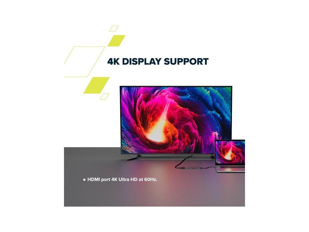 Pripojte svoj notebook alebo zariadenie k externému monitoru pomocou portu HDMI, ktorý podporuje 4K Ultra HD pri 60 Hz. Vychutnajte si krištáľovo čistý obraz a živé farby, ktoré sú ideálne na prezentácie, úpravu videa alebo jednoducho rozšírenie priestoru na obrazovke.