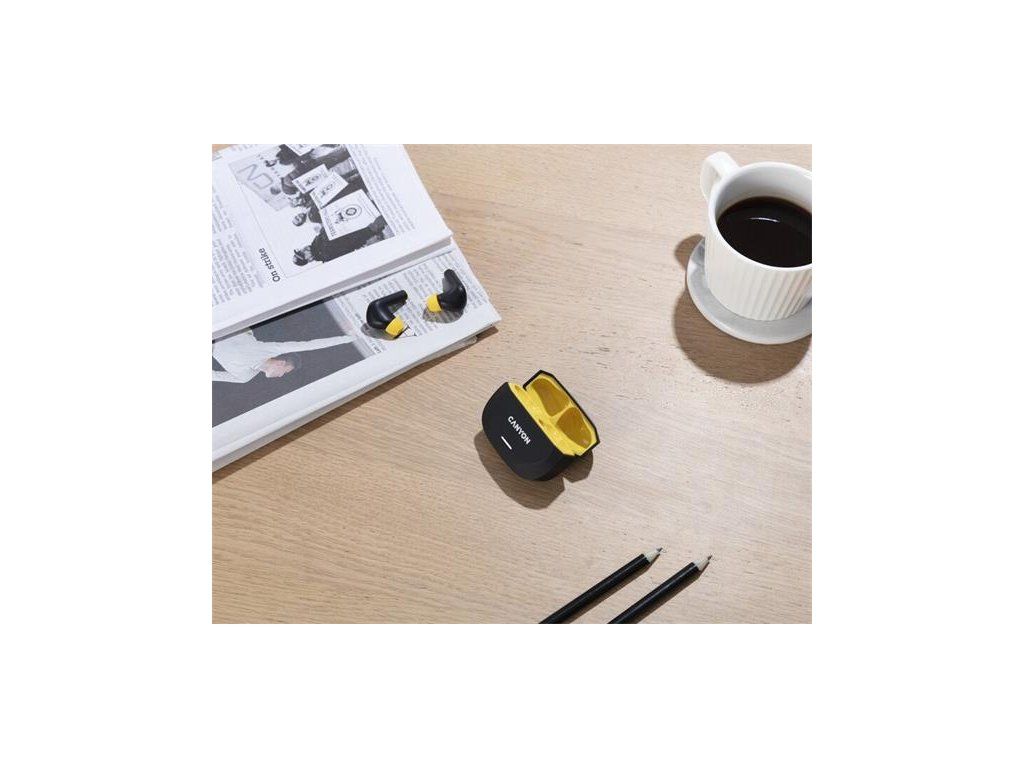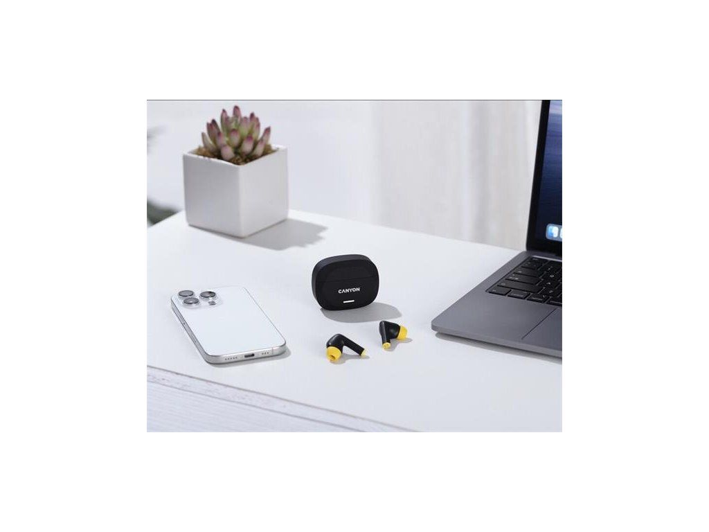 Canyon Hexagon 7, True Wireless Stereo Bluetooth 5.4 slúchadlá do uší. ANC, ENC funkcie, výdrž 27 hod, žlto-čierne CNS-TWS7BY