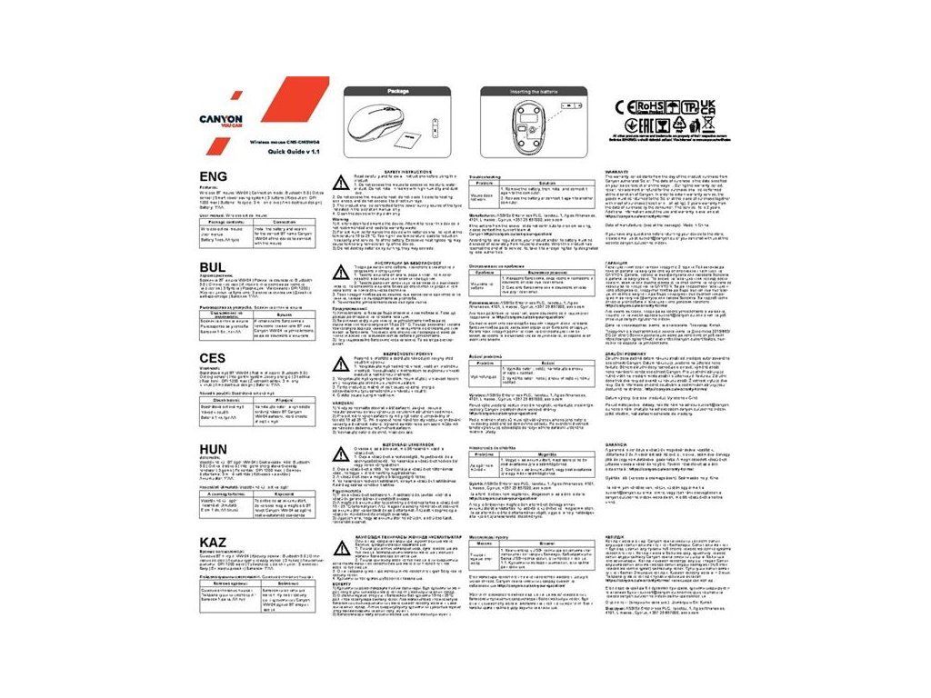 Bezdrôtová myš Canyon MW-04Myš MW-04 od Canyon je univerzálnym produktom z rodiny myší pre všetky vaše požiadavky. Vďaka technológii Bluetooth 5.0 ju možno bez námahy pripojiť k širokej škále zariadení. Čo ešte potrebujete vedieť? Optický snímač s rozlíšením 1200 DPI je kombinovaný s inteligentnou technológiou úspory energie. To znamená, že jediná AA batéria vydrží neuveriteľne dlho. K dispozícii sú 3 minimalistické tlačidlá, ktoré bez problémov vydržia 3 milióny kliknutí. Myš Canyon MW-04 je ľahká a kompaktná, jednoducho ju vložte do tašky a vydajte sa na dobrodružstvom.