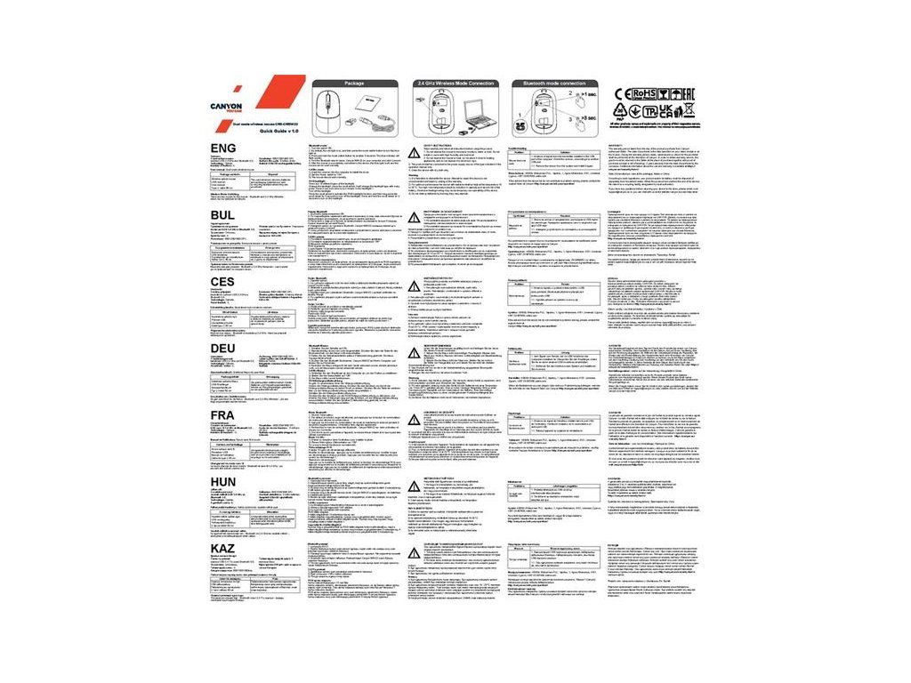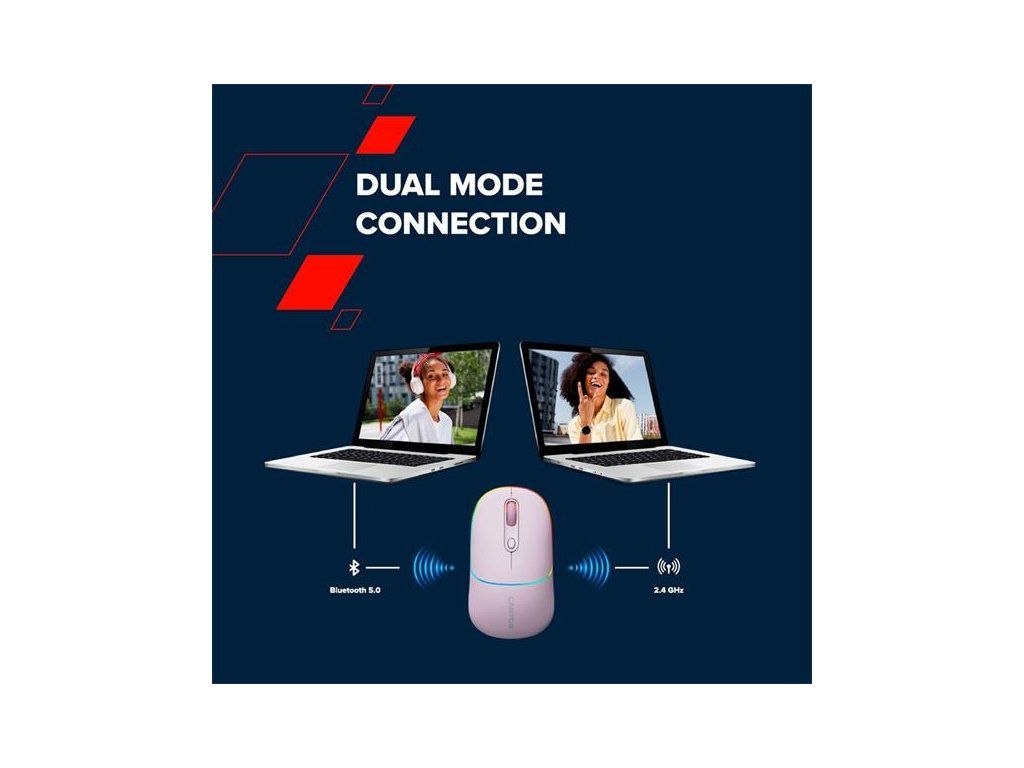 Canyon MW-22 - kompaktná myš s mnohými esami v rukáve.MW-22 je bezdrôtová myš s duálnym režimom: môžete ju pripojiť cez Bluetooth 5.0 alebo cez USB kľúč 2,4 GHz, takže si vyberte pripojenie, ktoré vyhovuje vašim potrebám. Pod "kapotou" sa nachádza optický senzor s variabilným nastavením DPI až do 1600. Batéria je nabíjateľná a má pomerne dlhú výdrž vďaka kapacite 650mAh a inteligentnému režimu šetrenia energie.
