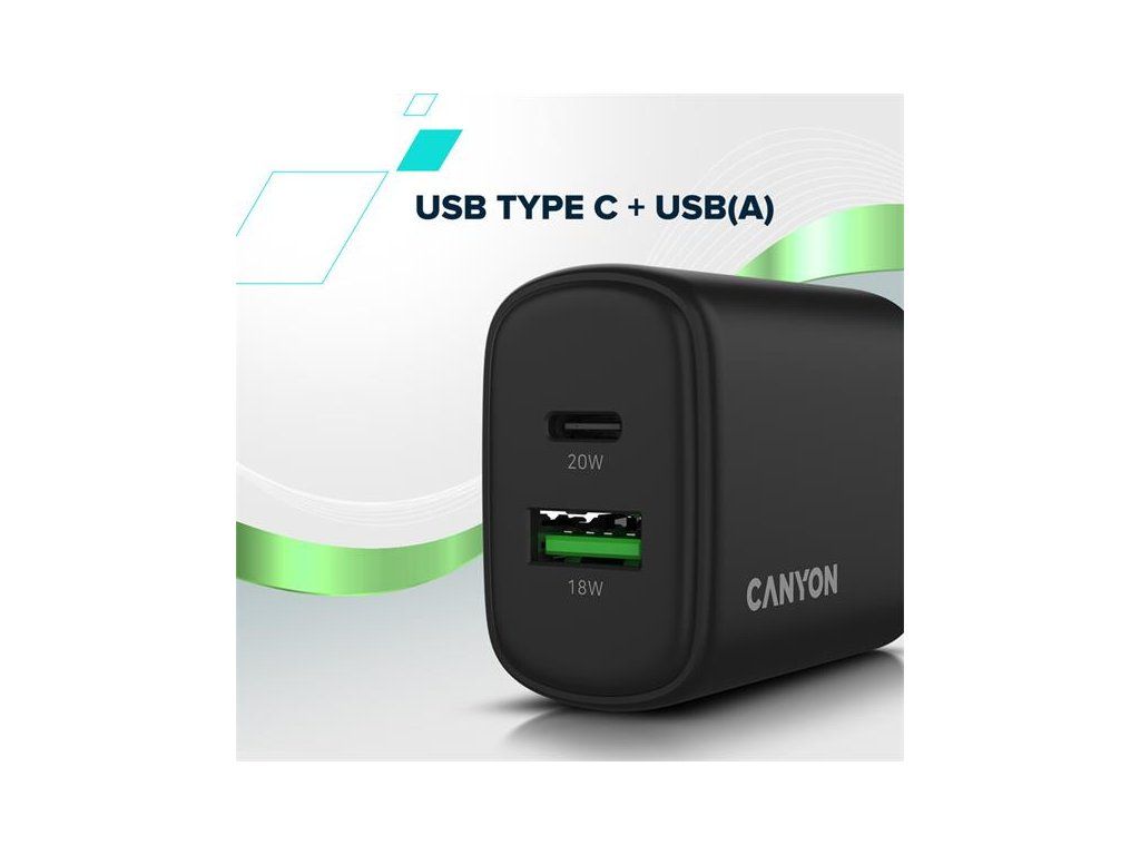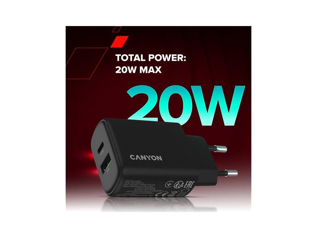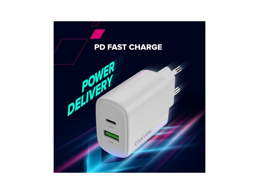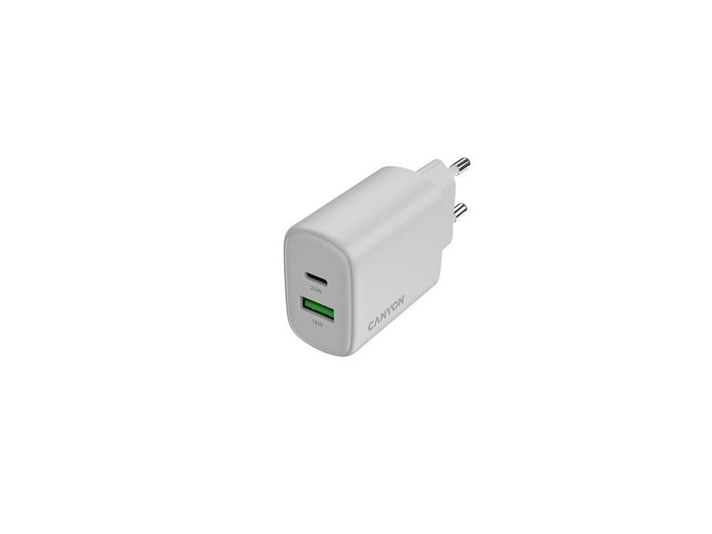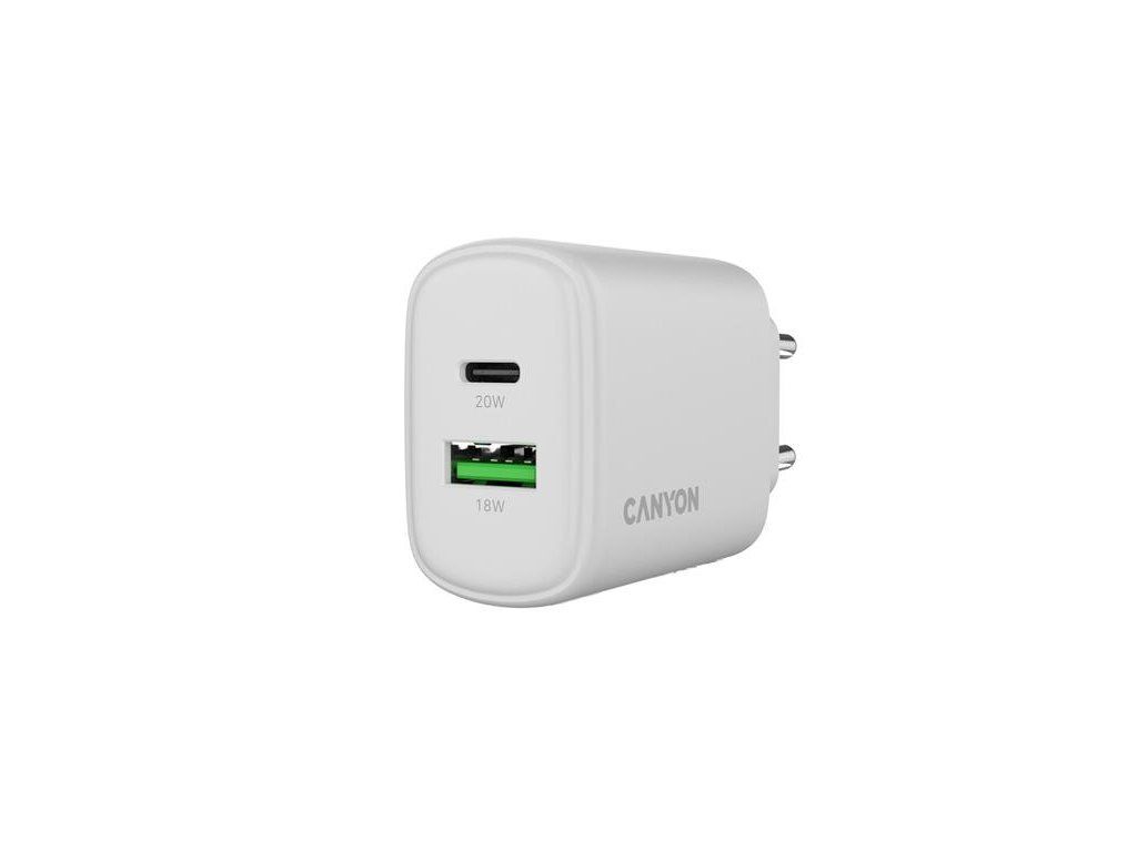 Canyon OnCharge 200, univerzálna nabíjačka do steny, 1x USB-C + 1x USB-A, PD 20W, biela CNE-CHA200-21