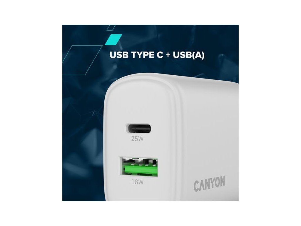 S celkovým výkonom 25 W poskytuje rýchle a efektívne nabíjanie pre najnovšie smartfóny, tablety a ďalšie zariadenia. USB(C) port podporuje PPS (Programovateľné napájanie), ktoré dynamicky upravuje napätie a prúd, aby maximalizovalo rýchlosť nabíjania a zároveň chránilo životnosť batérie. Medzitým USB-A port ponúka až 18 W výkonu, ideálne pre staršie zariadenia alebo príslušenstvo.
