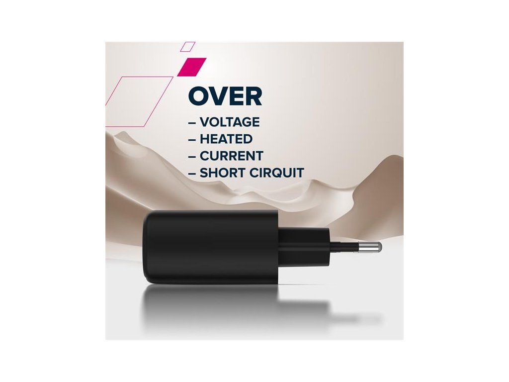 - Nástenná nabíjačka s 1 USB-C + 1 USB-A portom