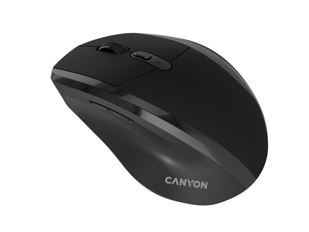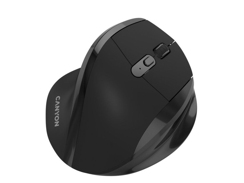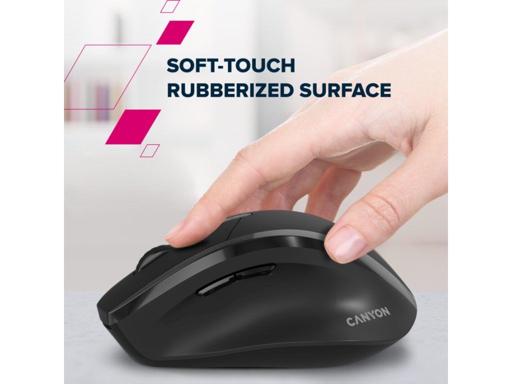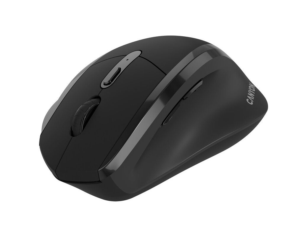 Canyon OnClick 17, ergonomická bezdrôtová optická myš, USB prijímač, 6 tlačidiel, 800/1200/1600 DPI, čierna CNE-CMSW17B