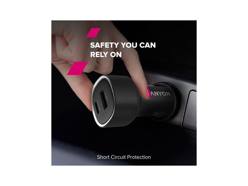 Canyon OnDrive 48, univerzálna autonabíjačka, 1x USB-C, 1x USB-A, rýchle nabíjanie, výkon 48 W CNE-CCABR3AC